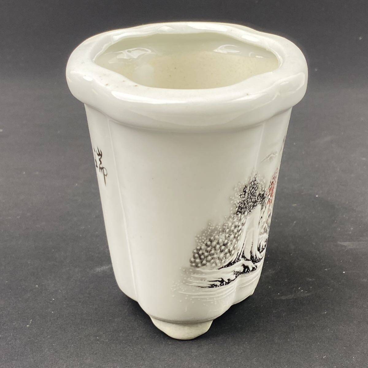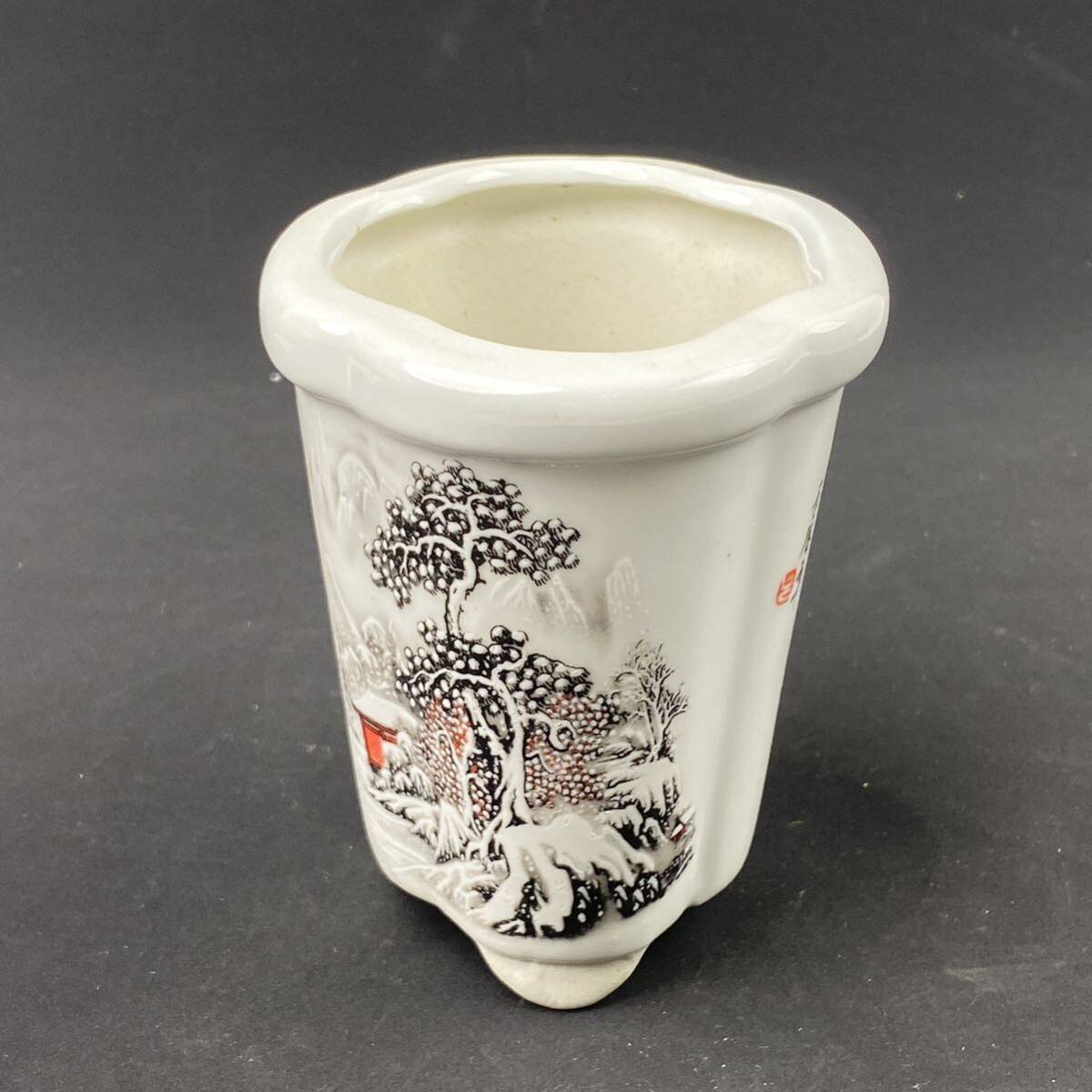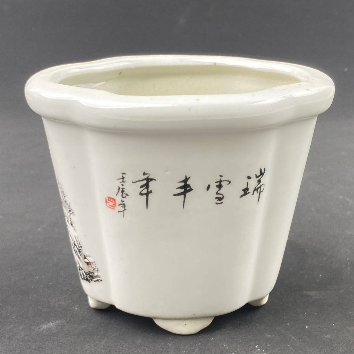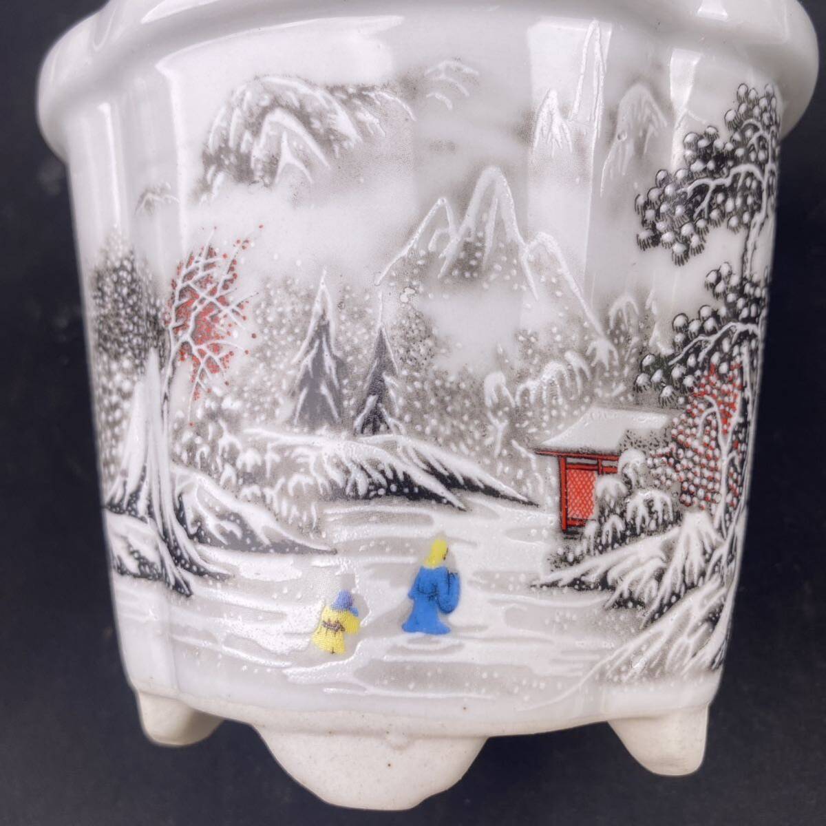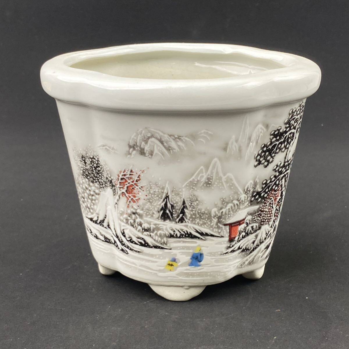 中国古美術 盆栽鉢 植木鉢 雪景図蘭鉢 盆栽 染付