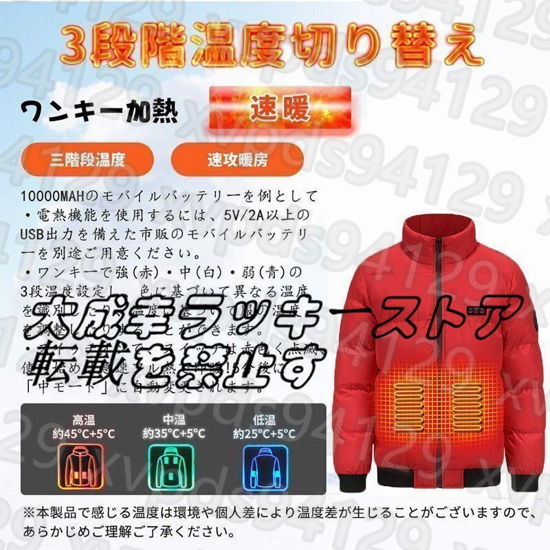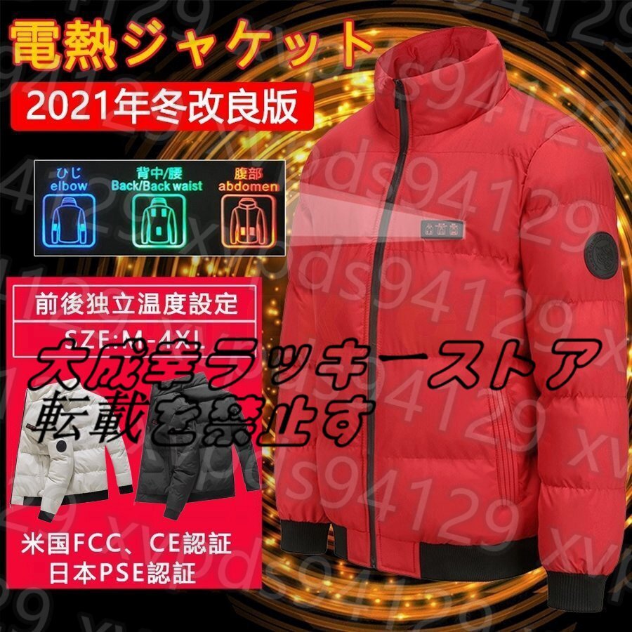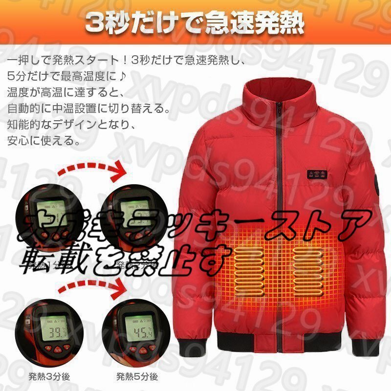 電熱ジャケット バイク用 電熱ベスト 長袖 コート 繊維ヒーター 前後独立温度 7箇所発熱 USB充電式 暖房服 防寒 レッド2XL 水洗い可能