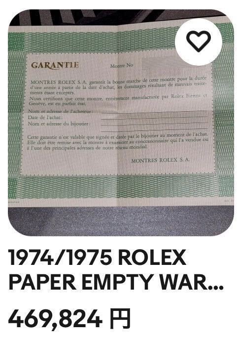 非常に希少なロレックス70年代のクロノメーター認定オープンギャランティペーパーです。