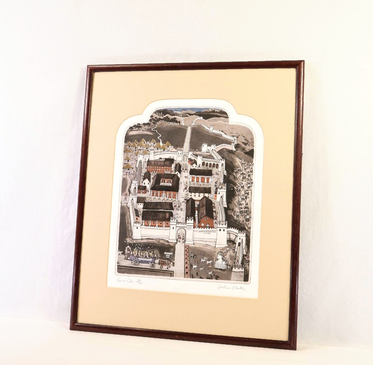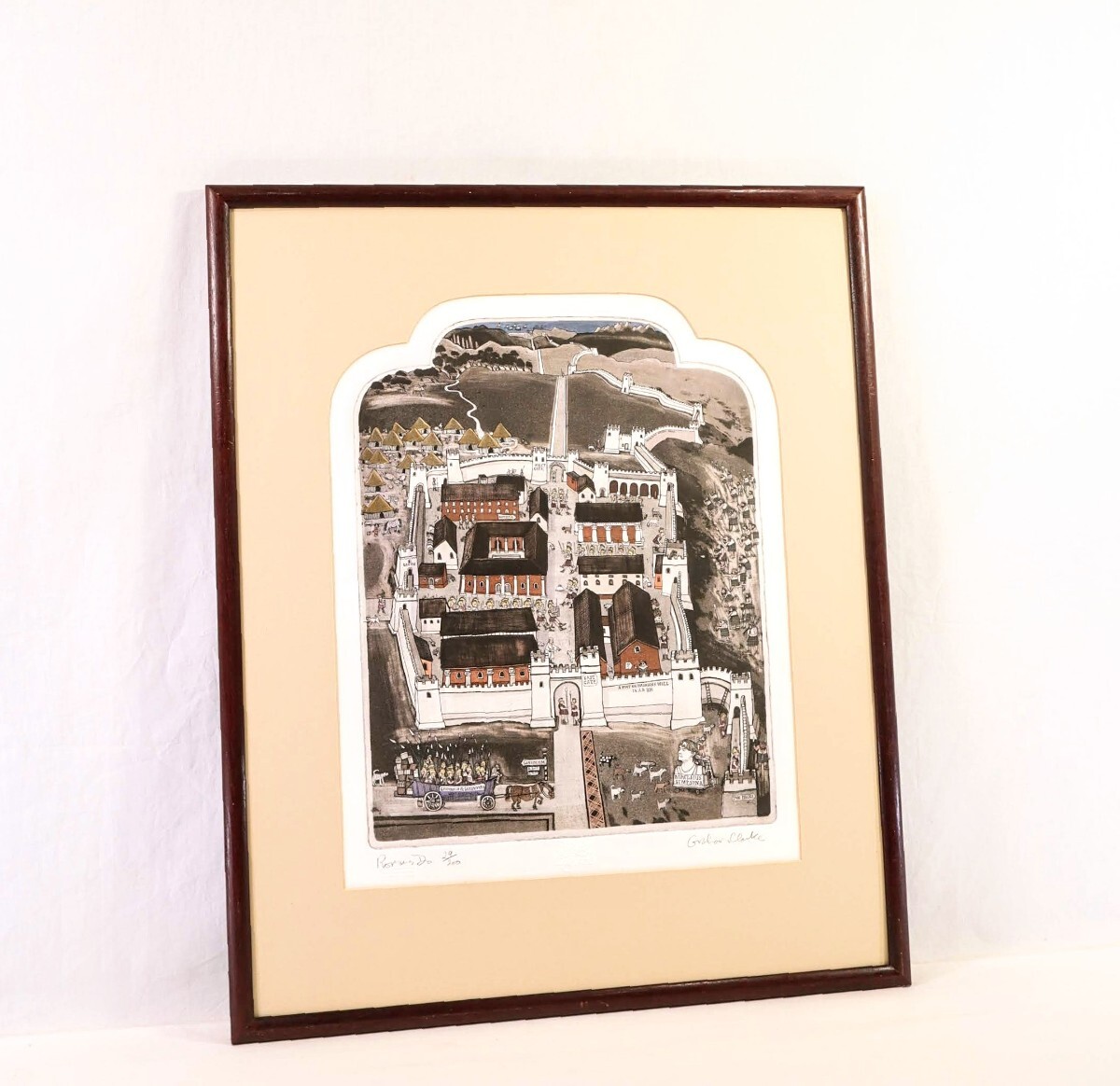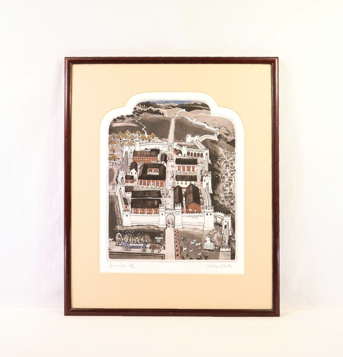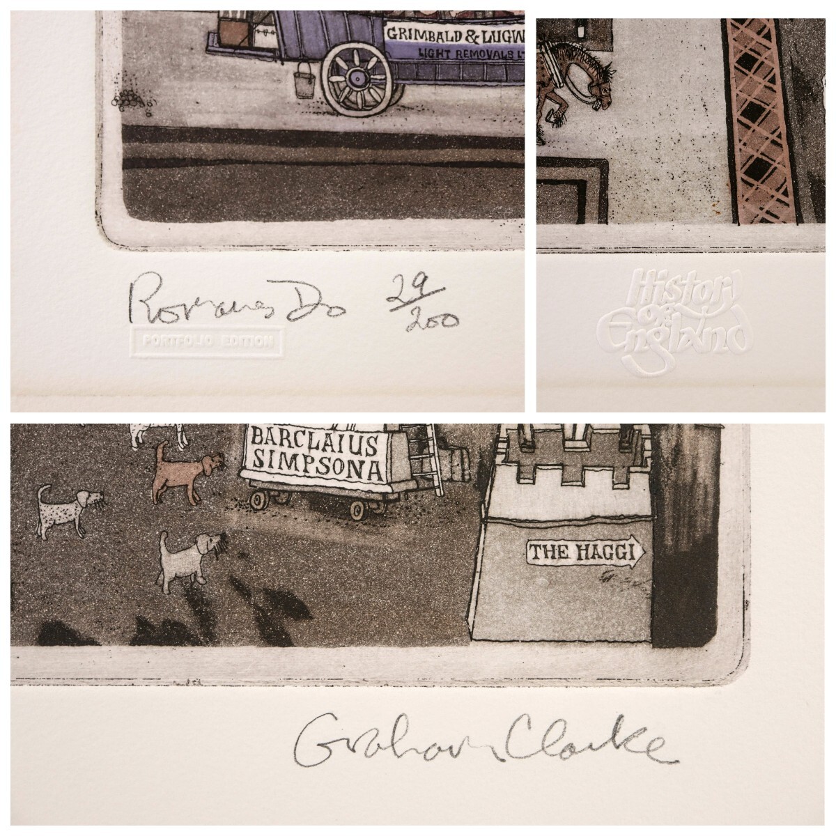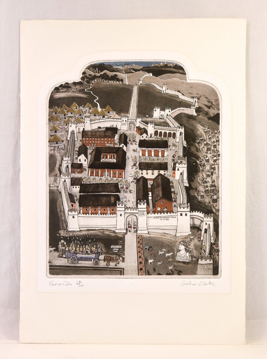 真作 グラハム・クラーク 銅版画+手彩色「ローマ軍駐屯地」画寸34.5×43cm 英国作家 自然と人間への溢れる愛と心暖まるユーモアの世界 9414
