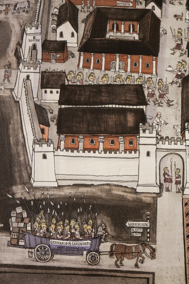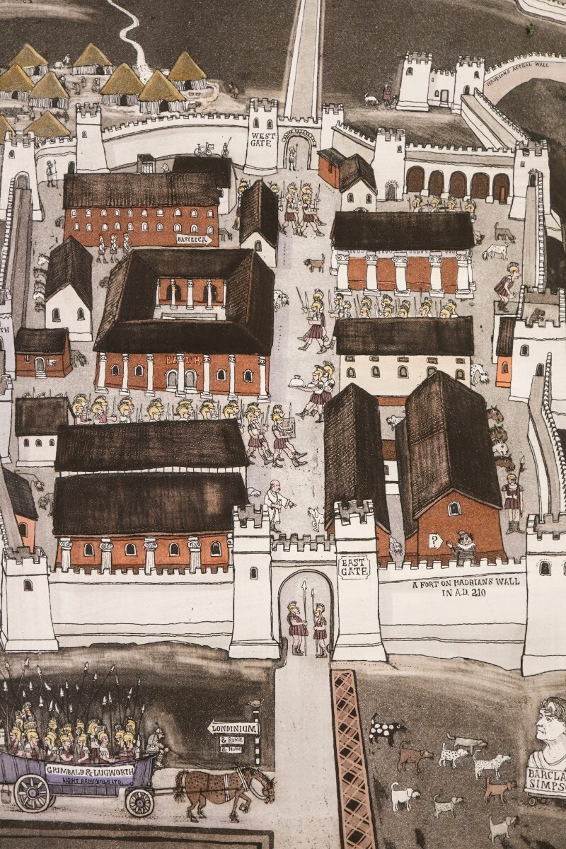 ★グラハム・クラーク 銅版画+手彩色「ローマ軍駐屯地」★