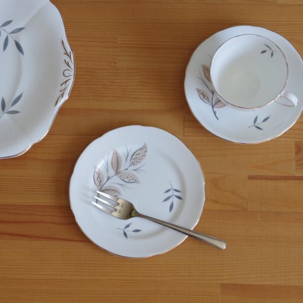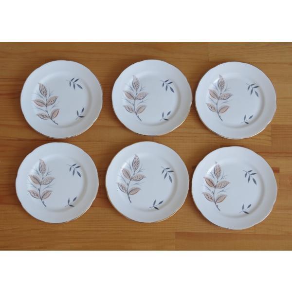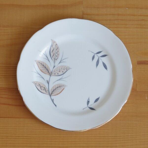 イギリス ヴィンテージ食器 Adderley アダーリー リーフ柄 デザートプレート ケーキ皿 #190813-1~6 ベージュ レトロ 16cm パン皿 トースト
