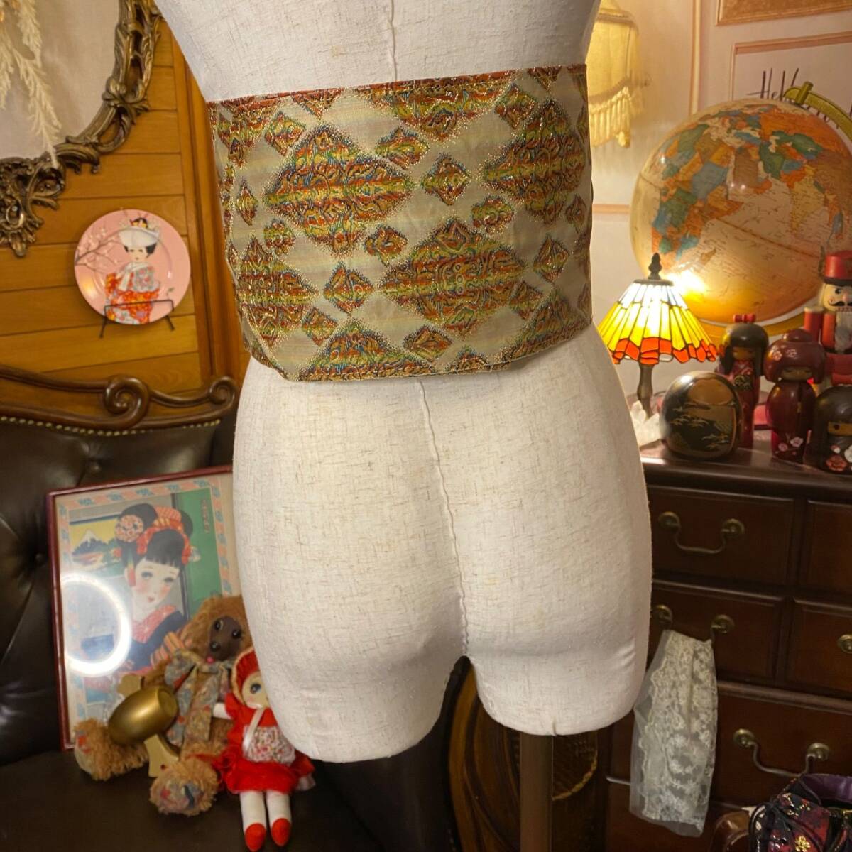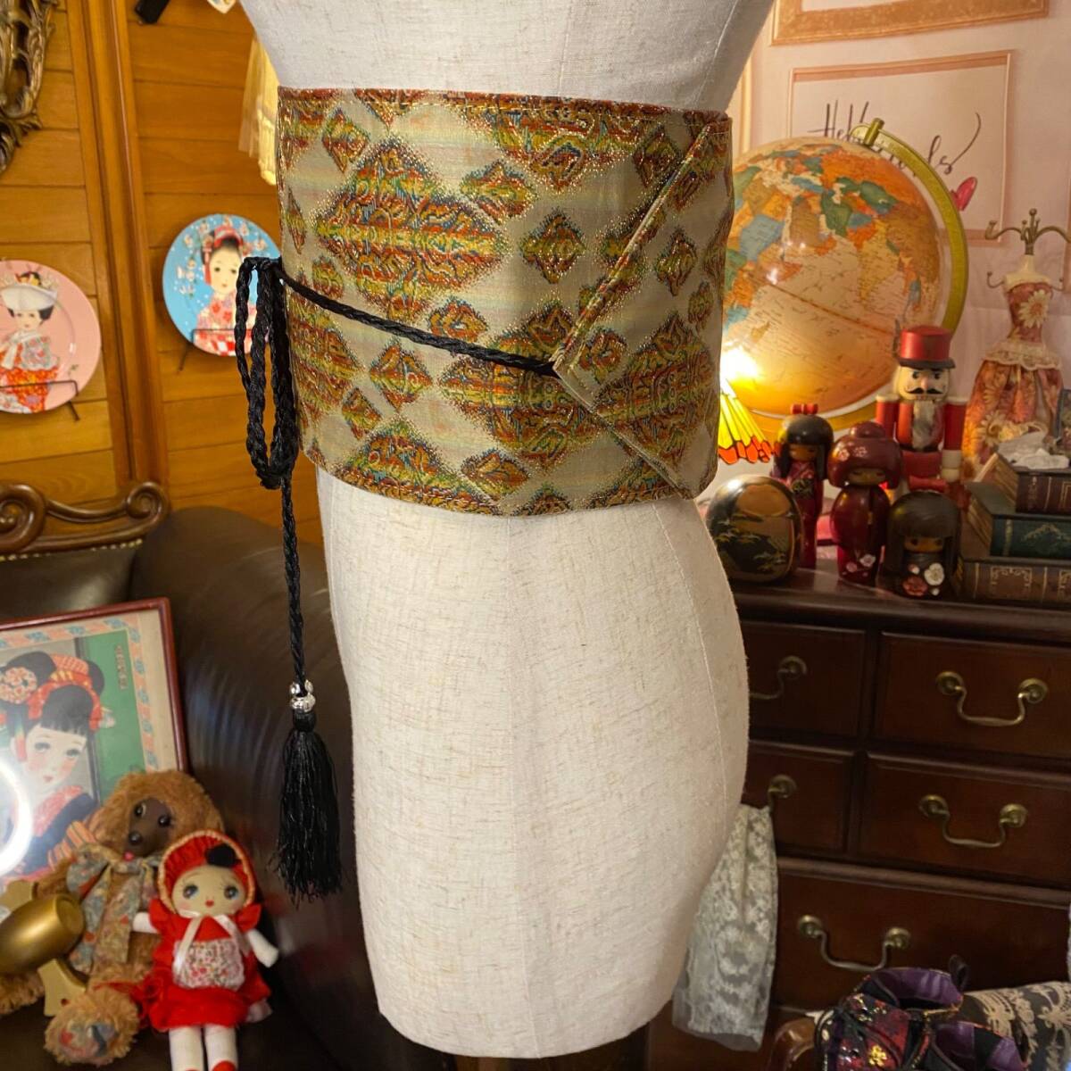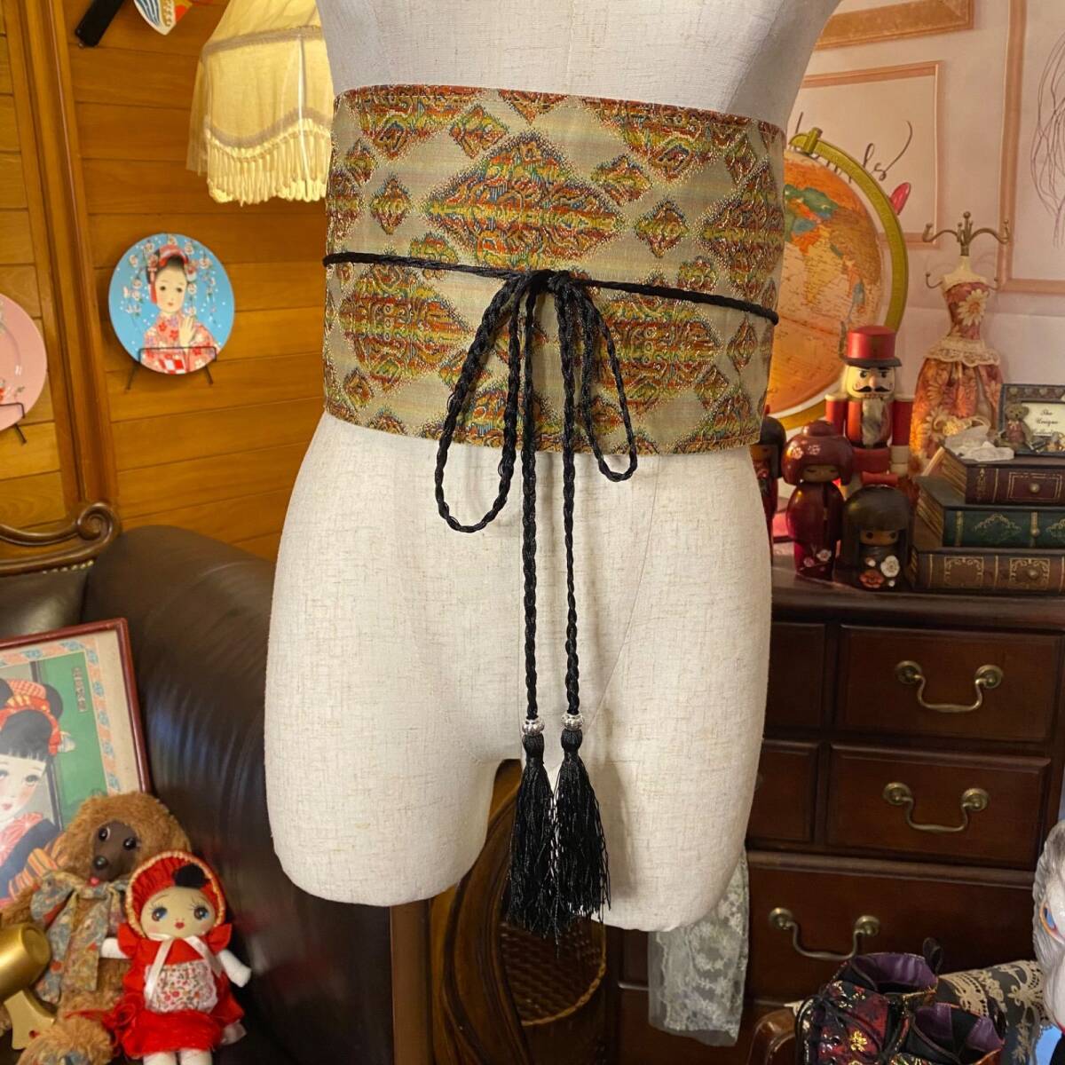 【 和洋折衷 名古屋帯 着物 和装 サッシュベルト 飾り帯 ウエストマーク リメイク ハンドメイド レトロ 古着 OB-129 】