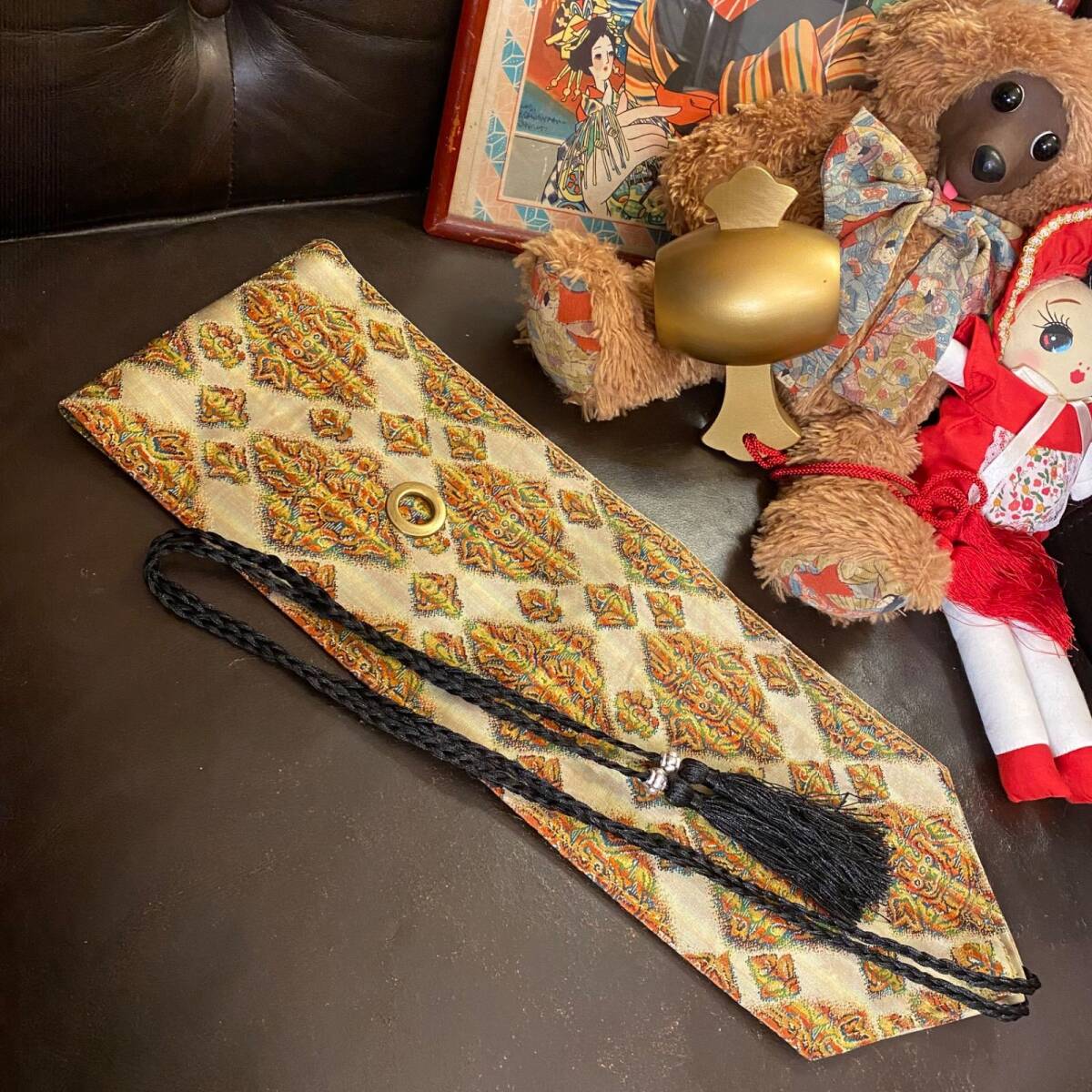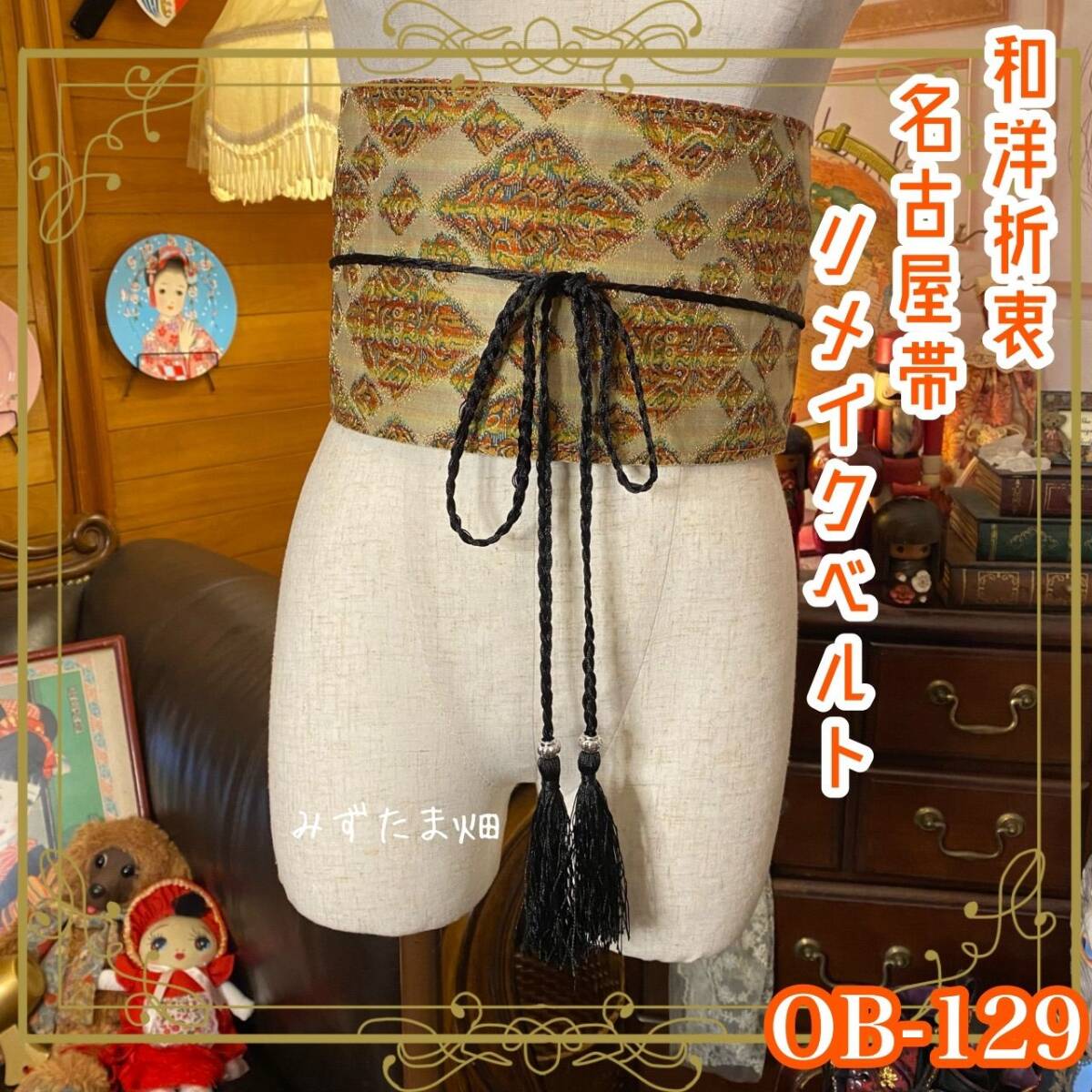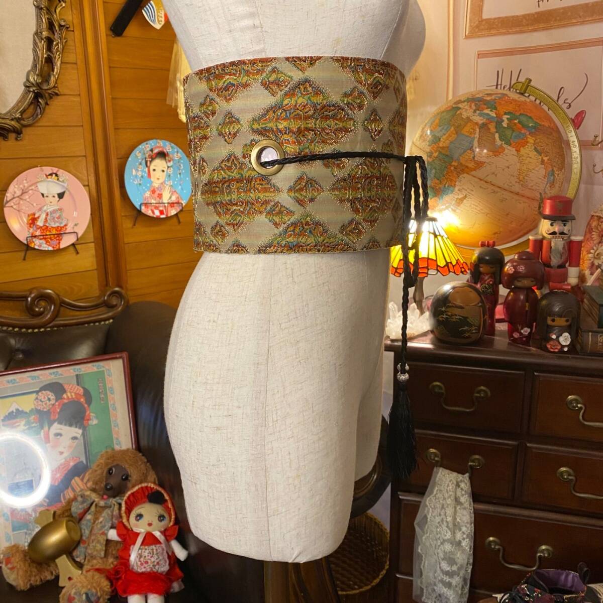 【 和洋折衷 名古屋帯 着物 和装 サッシュベルト 飾り帯 ウエストマーク リメイク ハンドメイド レトロ 古着 OB-129 】