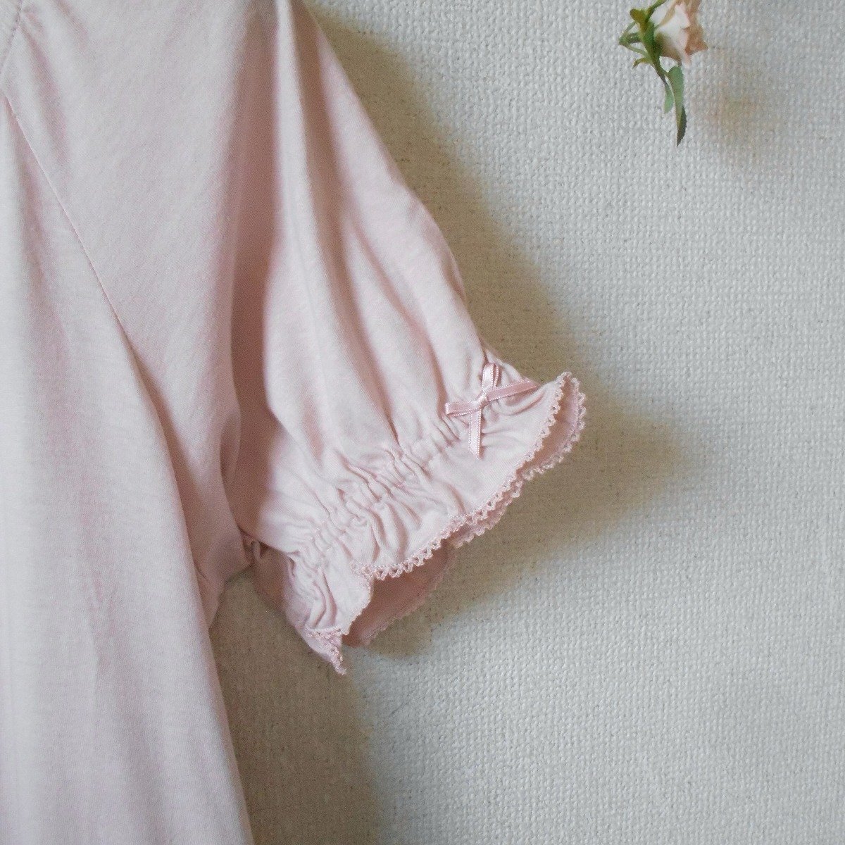 縁取りにはフリルが使用されていて、袖口にはサテンリボンが付いています。