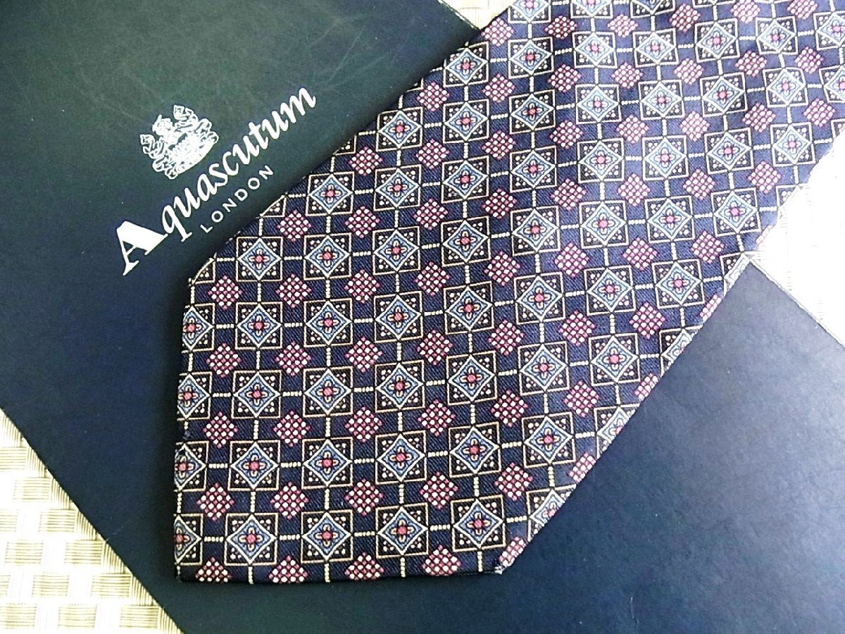 【在庫処分セール】●特売●FK8045●アクアスキュータム【花 デザイン スクエア 柄】ネクタイ●
