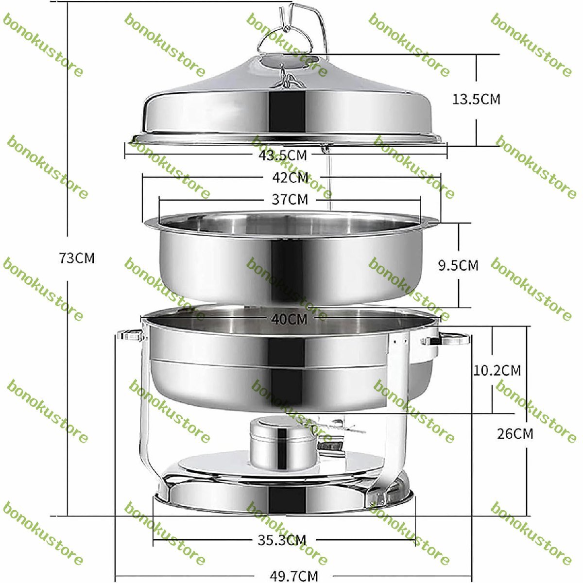 名前: ステンレス鋼のビュッフェ式ストーブ 材質: ステンレス鋼 容量: 9L 数量: 1 加熱方法:アルコール加熱 サイズ: 73x49.7x49.7cm 適用範囲:企業、卒業式、ホテル、ショッピングモール、結婚式、洋食レストランに適しています。 パッケージ: 1xビュッフェコンロ