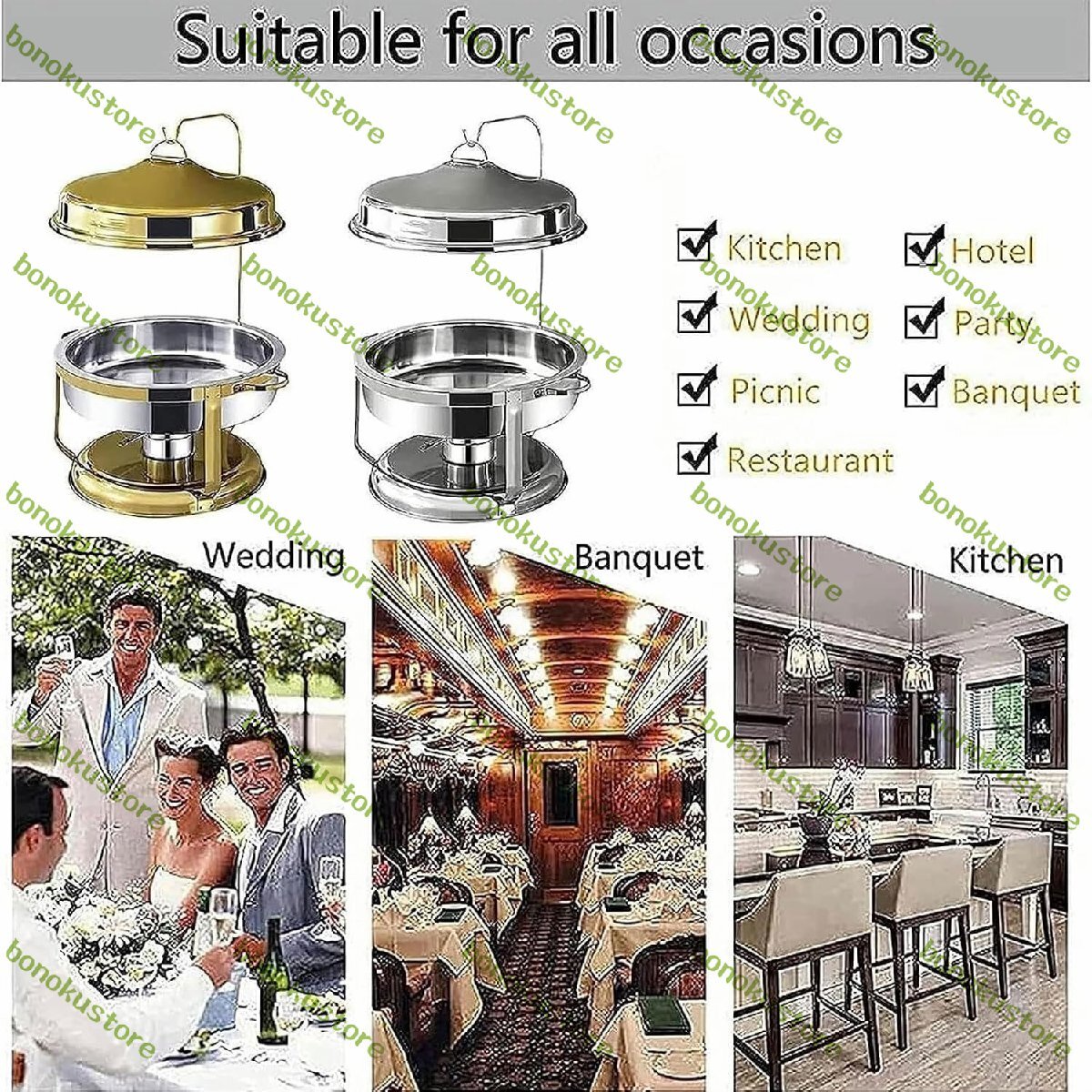 適用範囲:家庭用でも商業用でも、ビュッフェ用食器はあなたの要件に非常に適しています。レストランビュッフェ、結婚式、ホテルの朝食、誕生日パーティー、その他多くのイベントに設置できます。