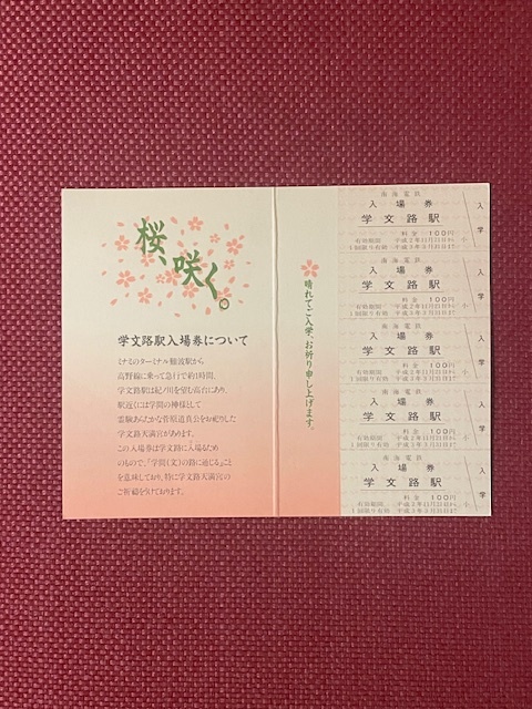南海電鉄 学文路駅入場券 (管理番号52-26)