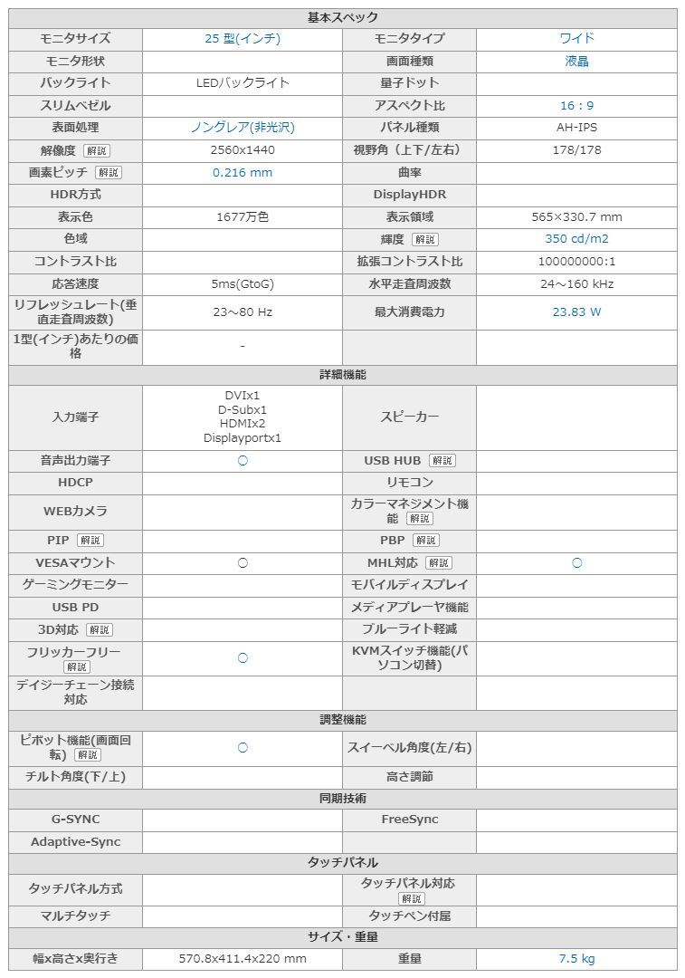 説明欄のモニタサイズ:27型ワイドと記載していますが