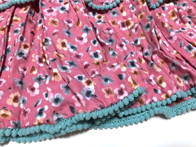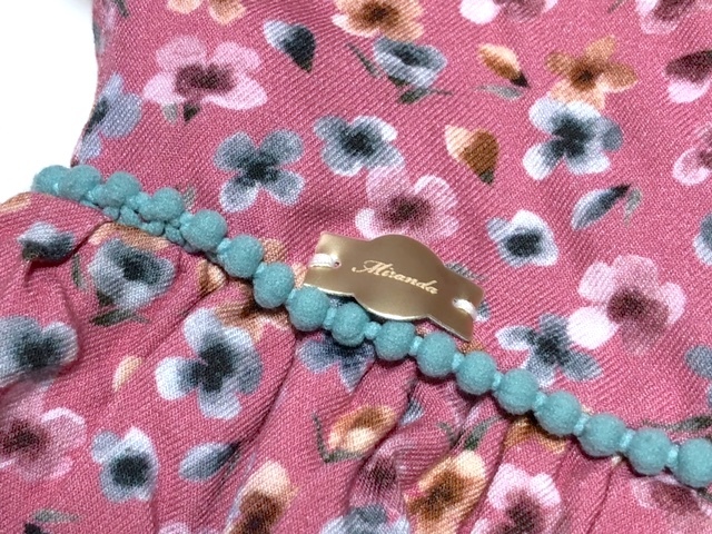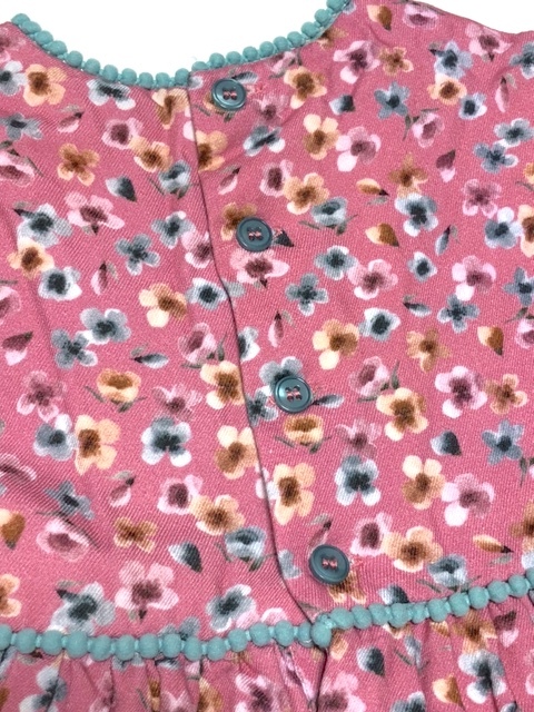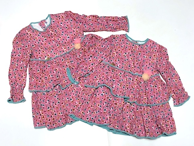 女の子向けのピンクとブルーのビスコースドレス。可愛らしい花柄デザインです。
