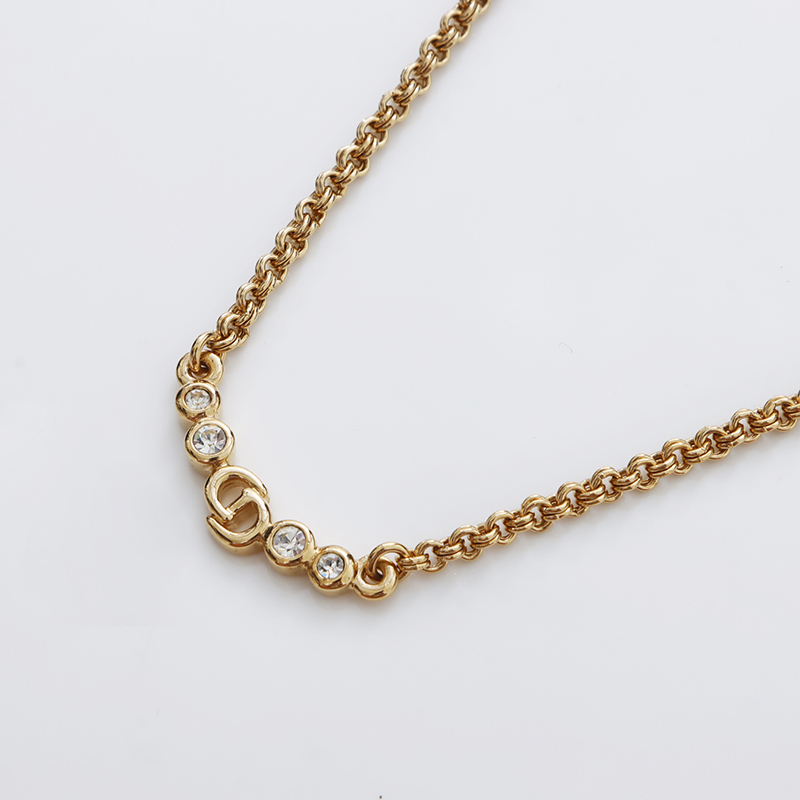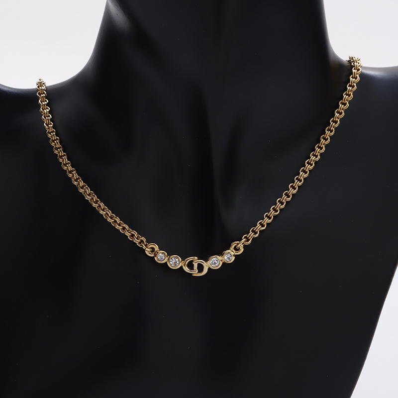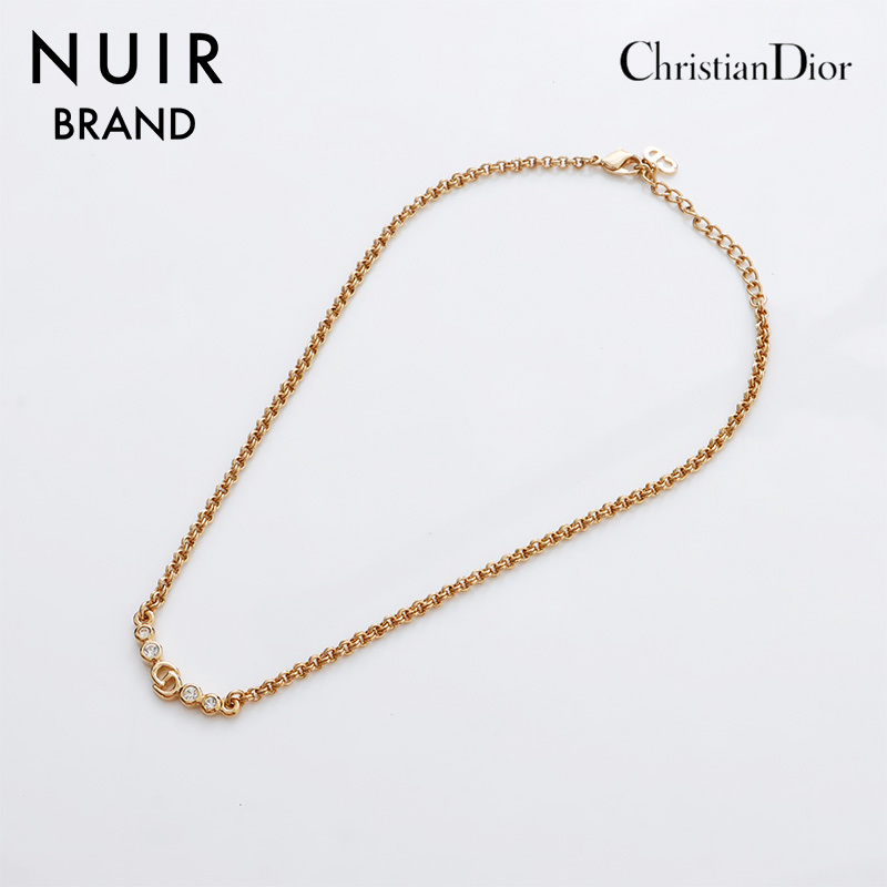 クリスチャンディオール Christian Dior ネックレス CD ロゴ ラインストーン ヴィンテージ ゴールド