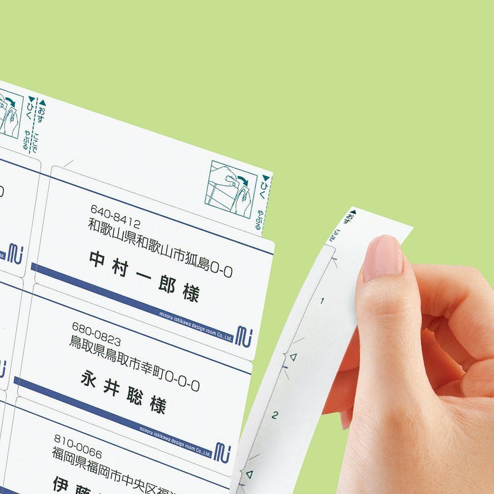 ※用紙種類が選択できる機種で「ラベル紙」または「厚紙」に設定し、印刷してください。※用紙厚さ134g/m2以上に対応する機種でお使いください。前面給排紙タイプのプリンタでは紙送りができない場合があります。