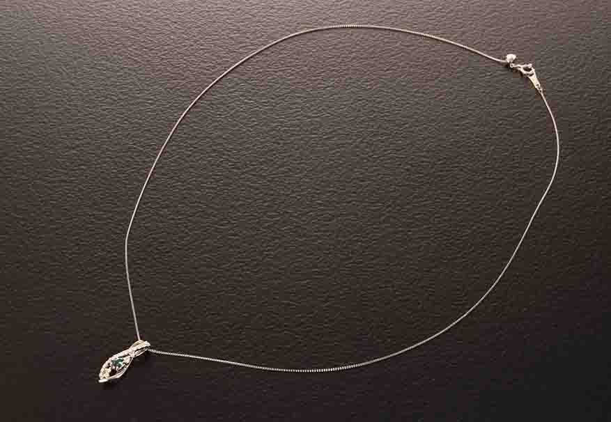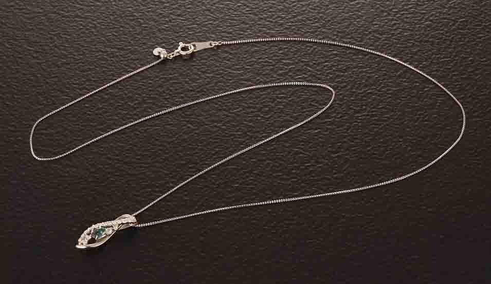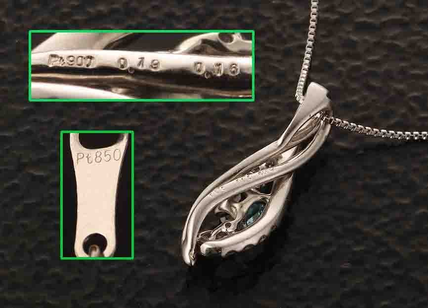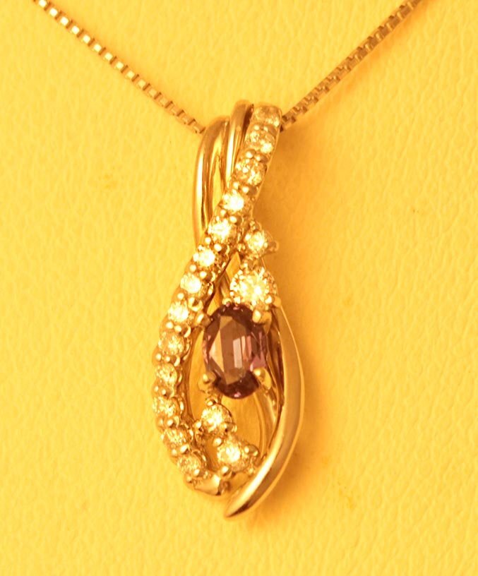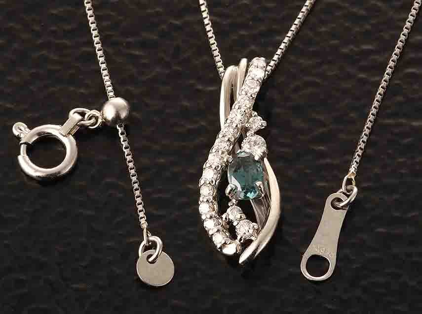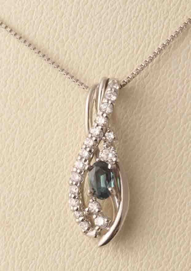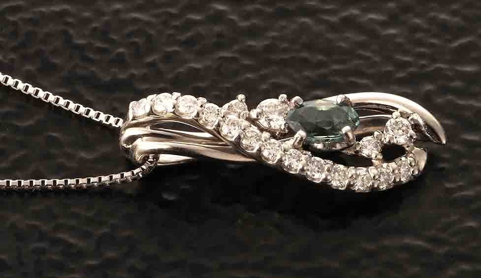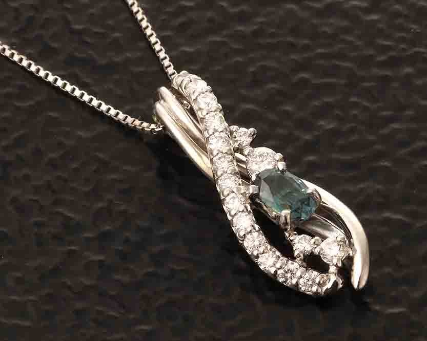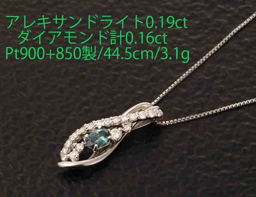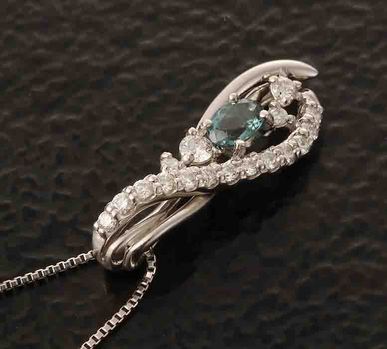 マテリアル | 天然アレキサンドライト0.19カラット(カラット刻印あり)、天然ダイア合計0.16カラット(カラット刻印あり)トップはプラチナ900製、ネックレスはプラチナ850製 |