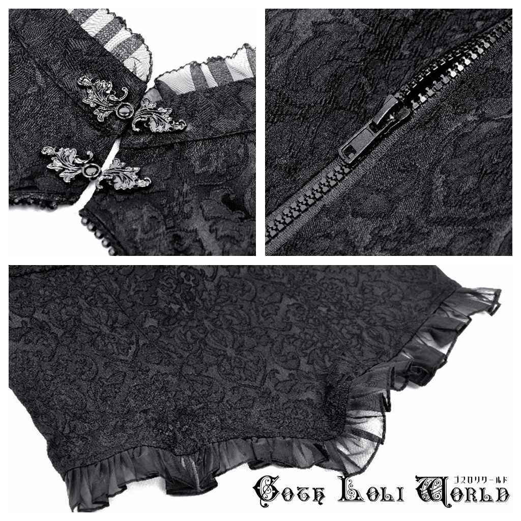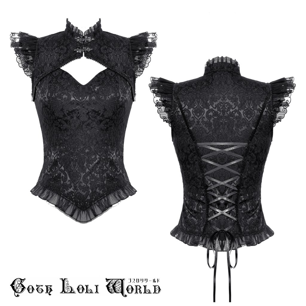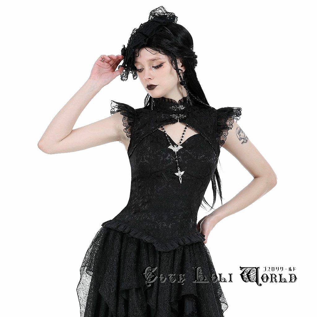 TW568-M フリルレースジャガードノースリーブ カットソー ゴスロリワールド ゴシック パンク ロック ロリィタ ビジュアル系 V系