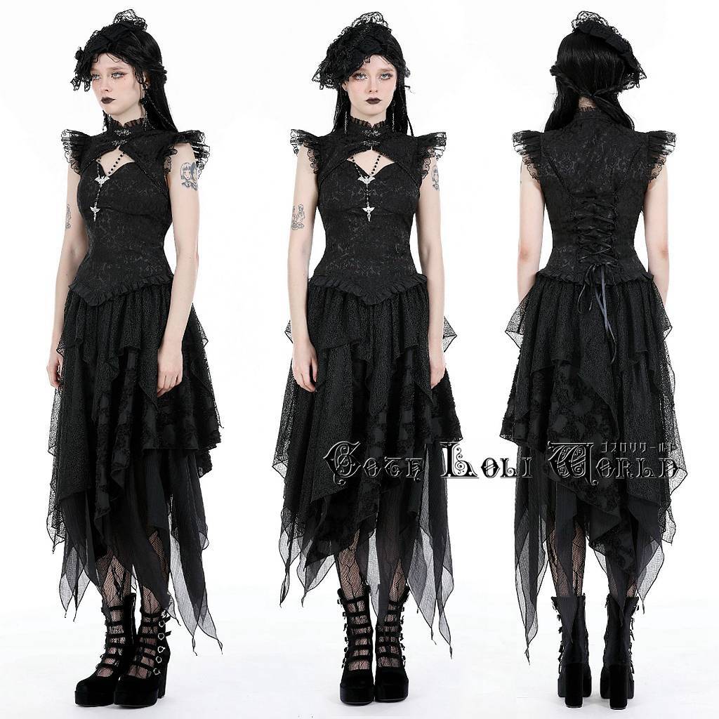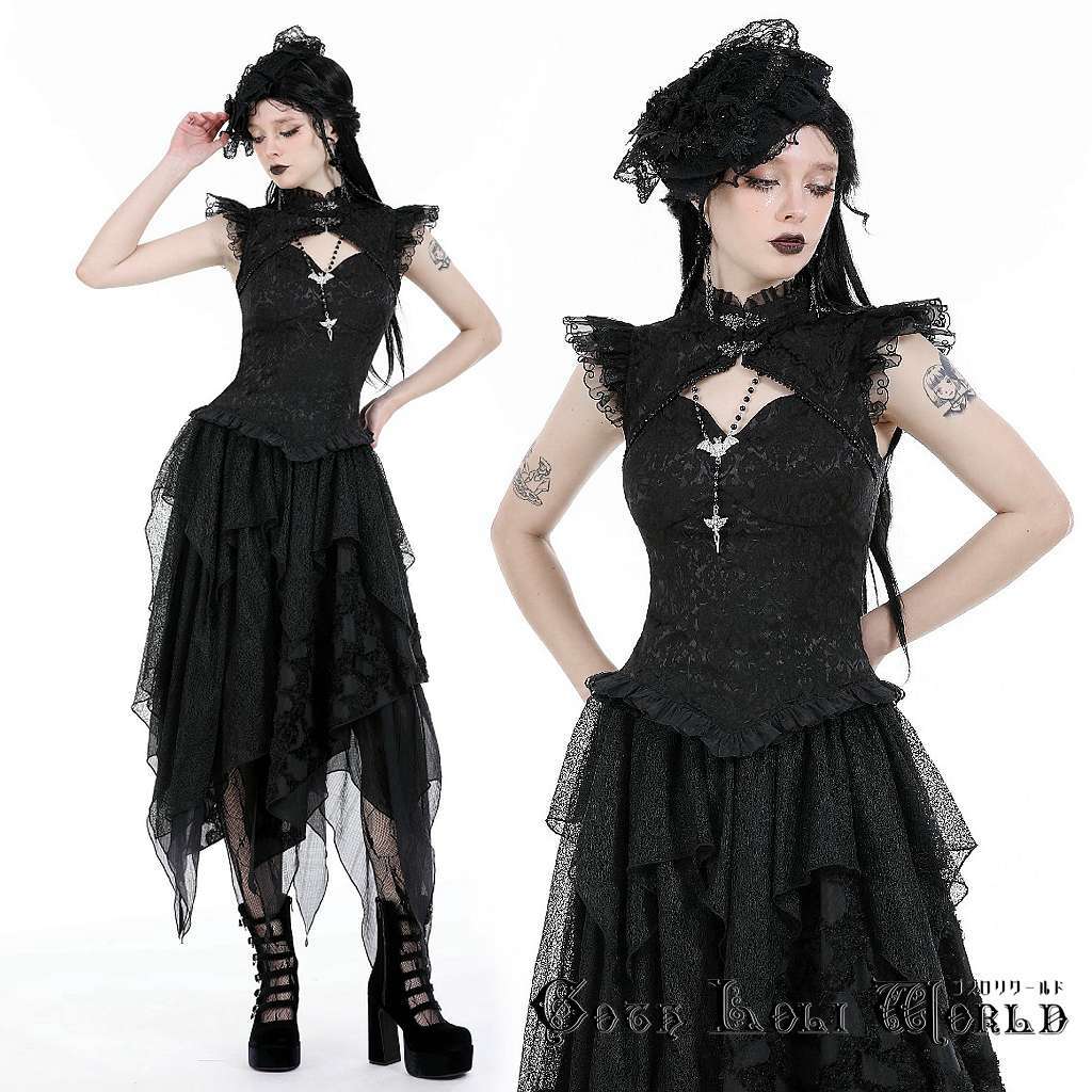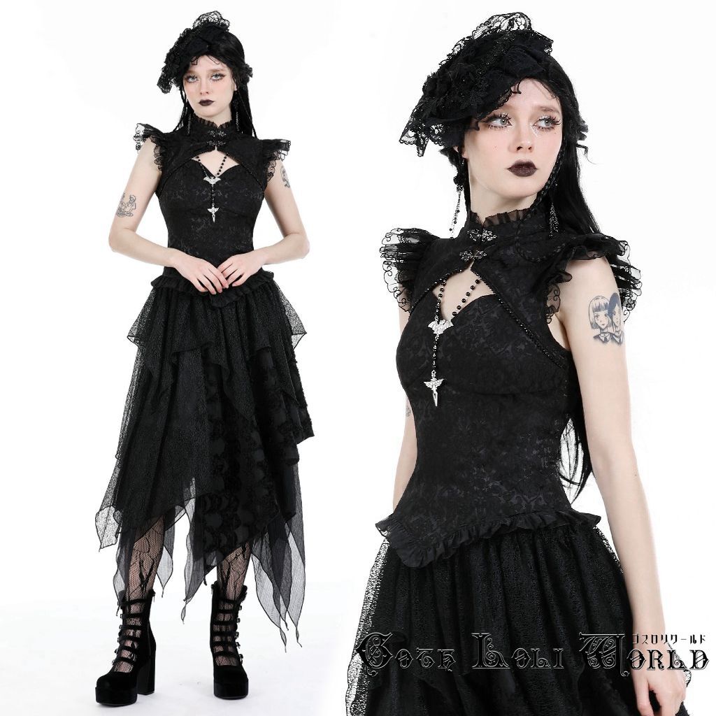 TW568-M フリルレースジャガードノースリーブ カットソー ゴスロリワールド ゴシック パンク ロック ロリィタ ビジュアル系 V系