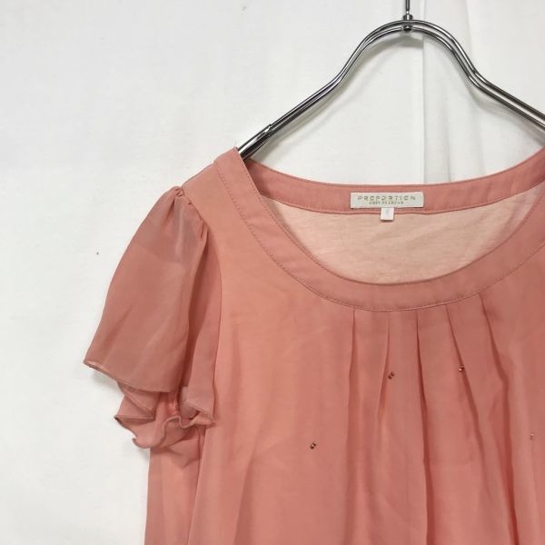 商品: PROPORTION BODY DRESSING/プロポーションボディドレッシング 半袖カットソー ラインストーン シフォン生地 裏地あり ピンク サイズ2 レディース