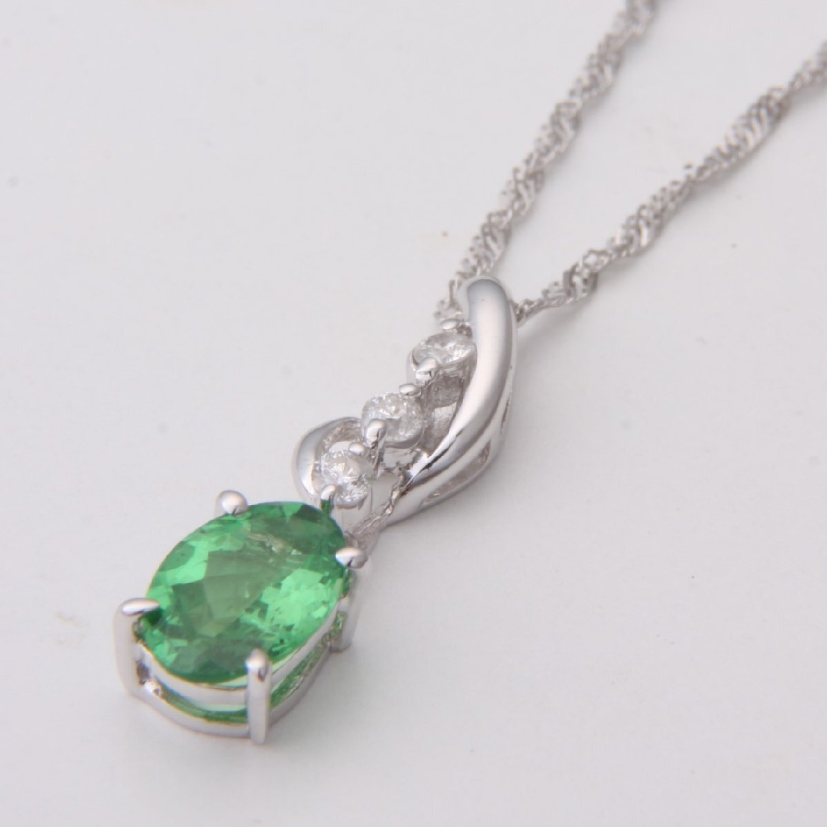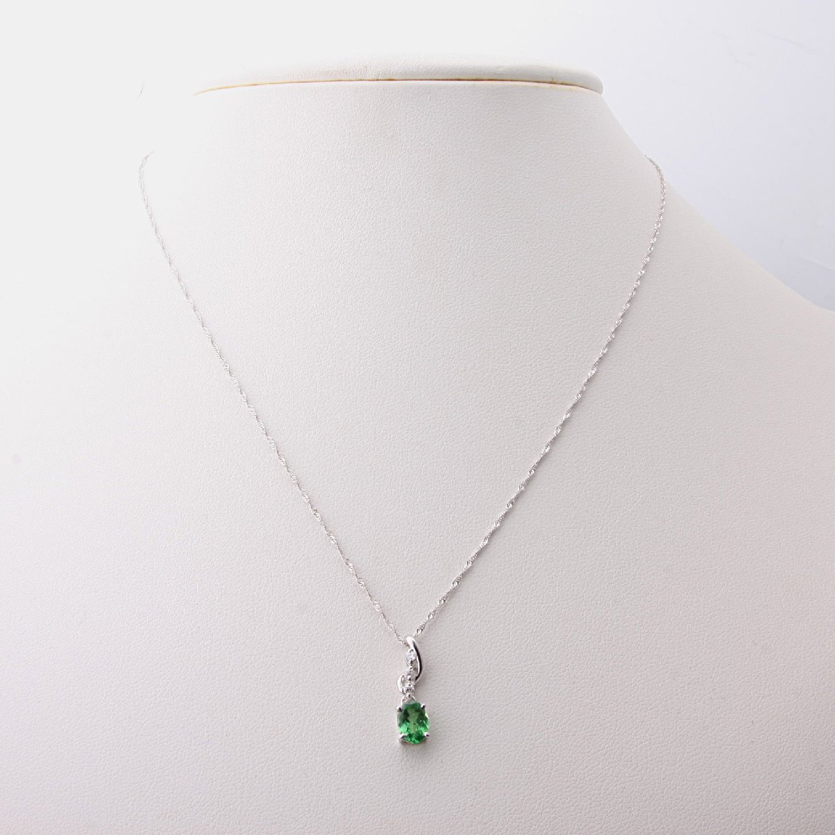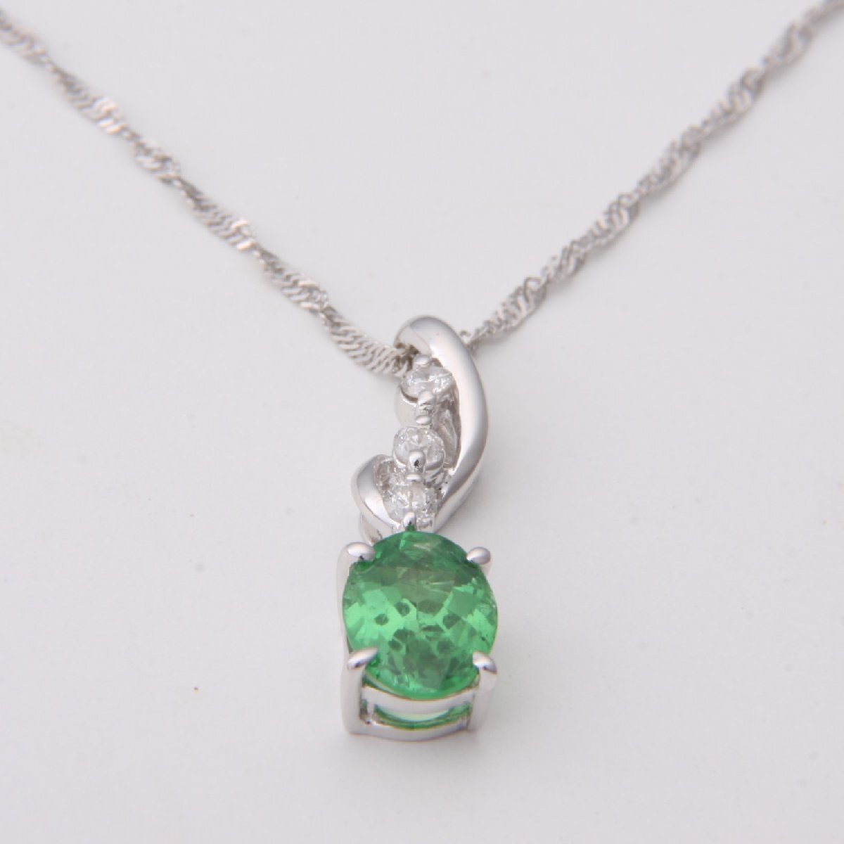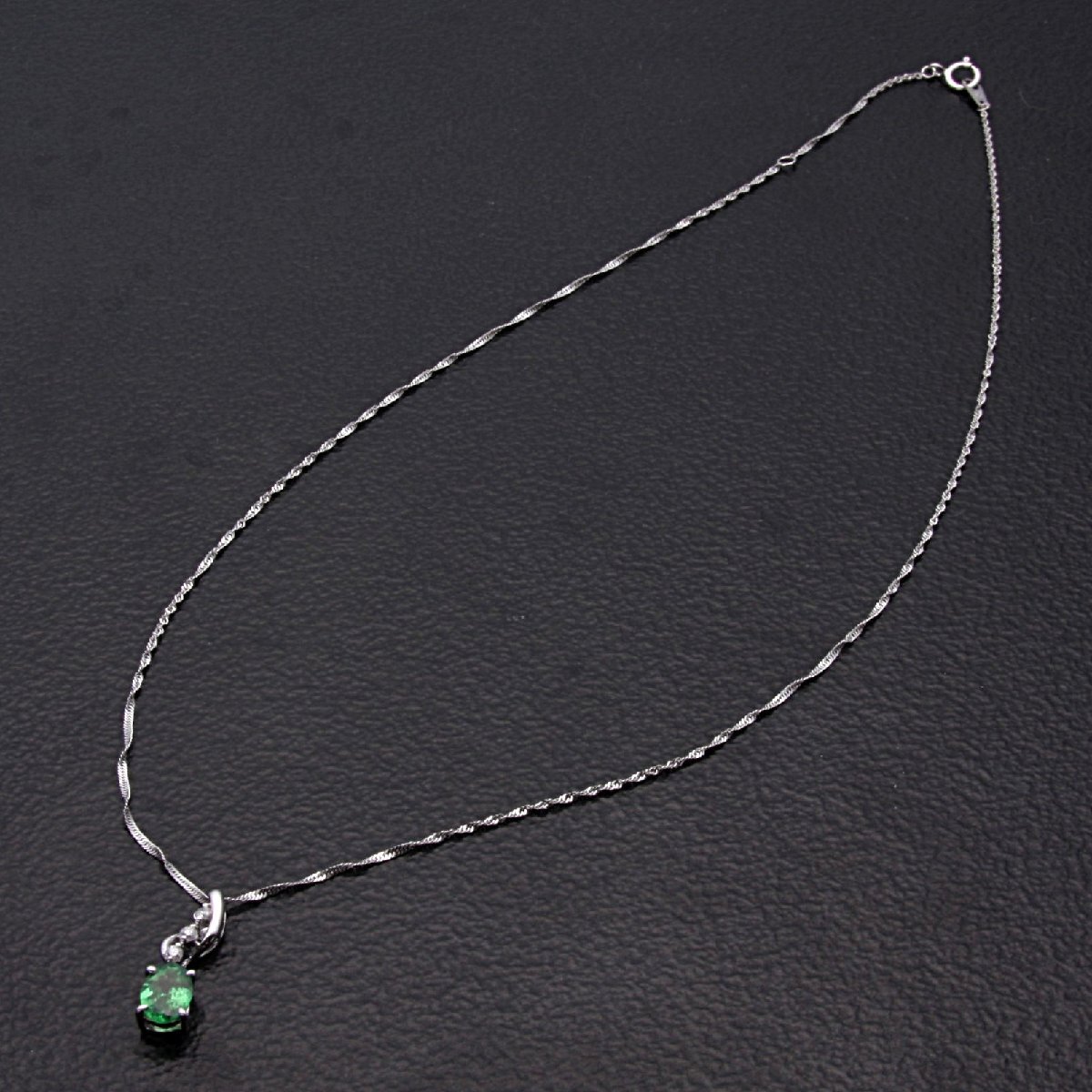 イタリア製 K18WG/750●0.64Ct天然グリーンガーネット×0.06Ct天然ダイヤモンドペンダントネックレス39cmです。
