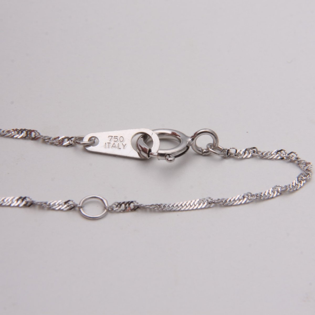 ペンダントトップに’K18WG D0.06 0.64’、チェーン留め具のプレートに’750 ITALY’、引き輪に’750’の刻印があります。