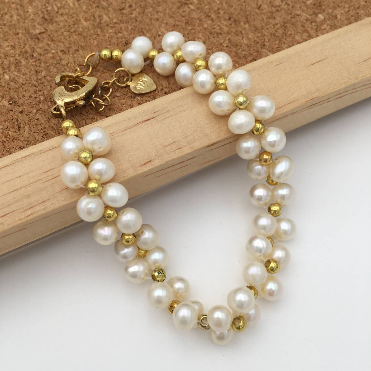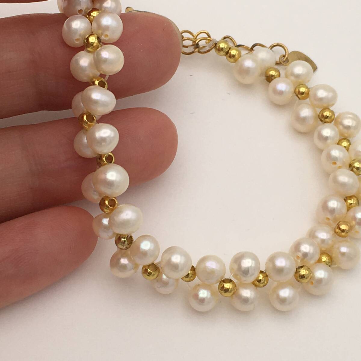 <新品>シルバー925 ゴールドプレーティッド 淡水パール 真珠 ブレスレット 調節可能 結婚式 プレゼント ギフト パーティー