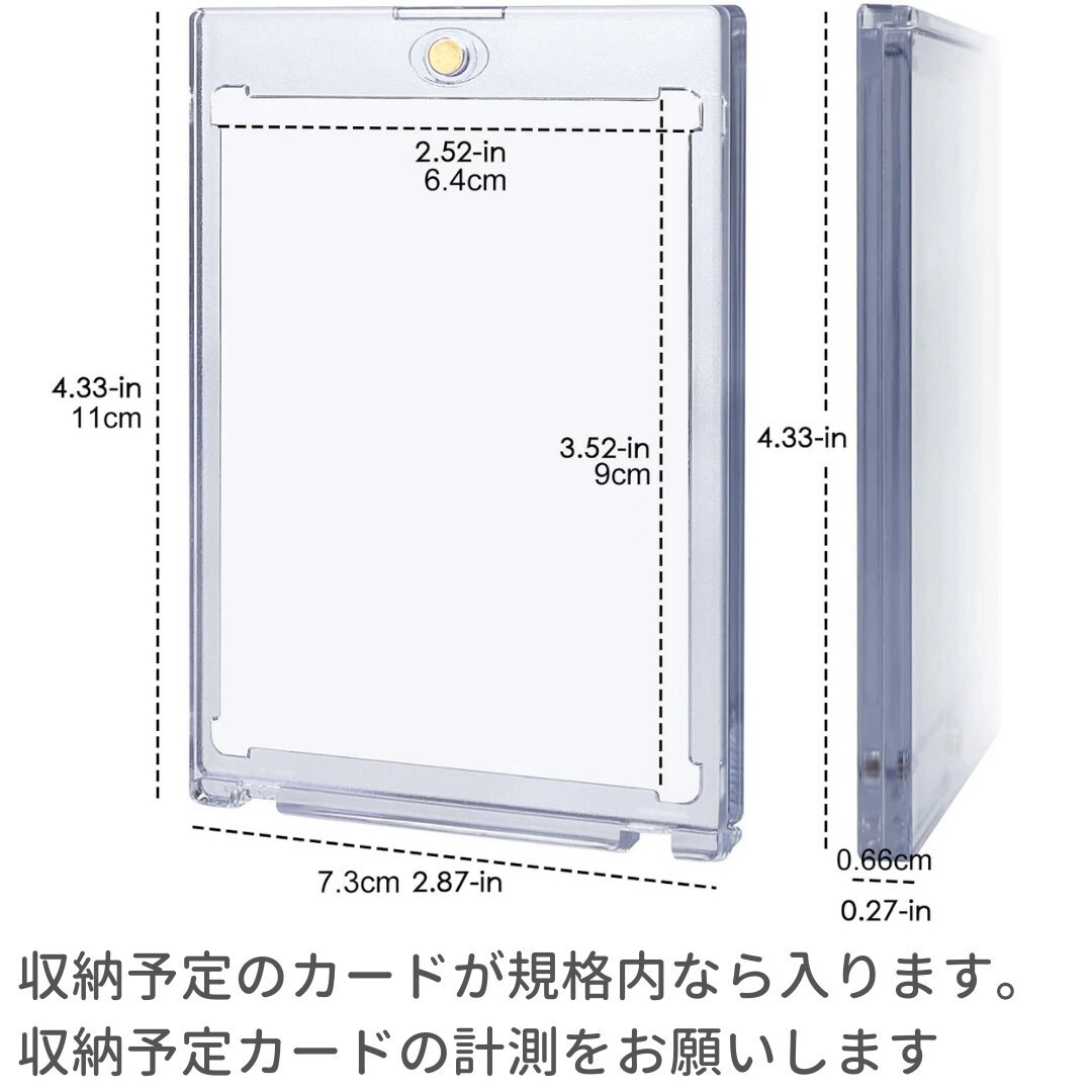 トレーディングカードを大切に保管できるプラスチックケースです。マグネット式のためねじ式のスクリューダウンに比べて取り外しがしやすく、カードの交換や保管をスムーズに行うことができます。