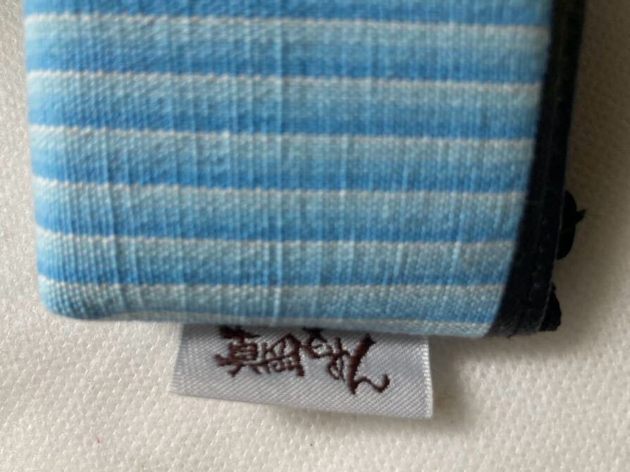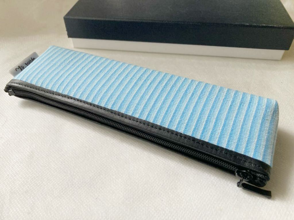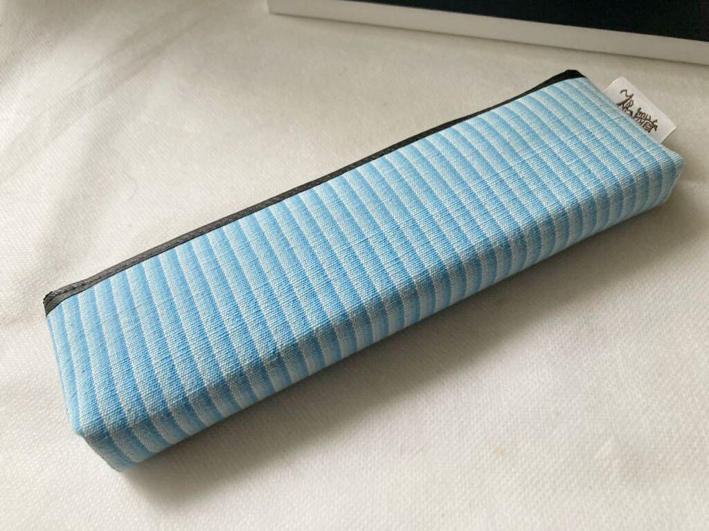 ◆ 水色のコットン製で、サイズは、19.5cmX6cm、マチ2cmほど。