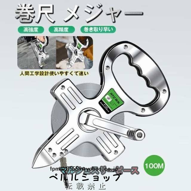 100M コンベックス ステンレス鋼メジャー 合金鋼巻尺 巻き尺 スケール 合金鋼テープ12.5mm 目盛り 見やすい diy 作業工具