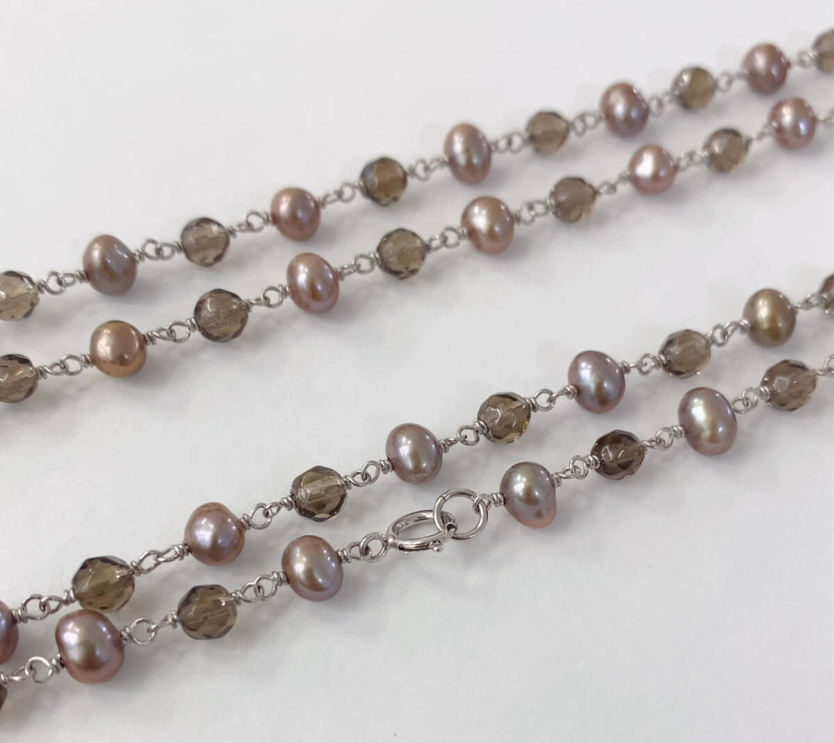 新品未使用品 素敵 パール 淡水真珠 水晶 金具925 シルバー ネックレス 約24.5g | |||||||||||||||