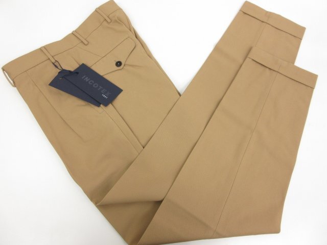 未使用 【インコテックス INCOTEX】 1T0061 60559 500 定価55000円 コットンスラックス パンツ (メンズ) size52 ライトブラウン□3SLP0133