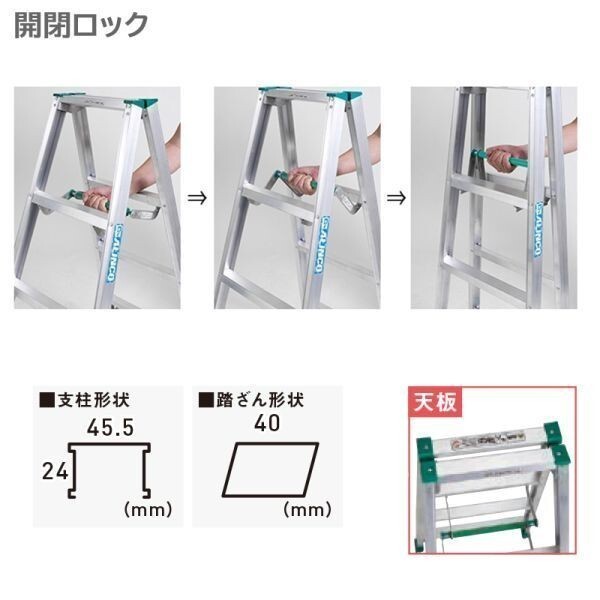 ![]() 軽さと収納性を追求したエコノミータイプの超軽量専用脚立です プロの方はもちろん女性や高齢者の方にも配慮した軽量設計です 狭い場所でも保管しやすい薄型収納タイプ(厚み126mm) 折りたたみ式 最大使用質量100kg 【商品詳細】 設置サイズ:幅68.4cmX奥行133.5cm 本体重量:6.0kg 段数(天板除く):6段 収納時サイズ:幅68.4cmX奥行12.6cmX高さ210.6cm 耐荷重:100kg 天板高さ(全長):1.99m 使用最大高さ:1.70m 材質:アルミ合金 メーカー:アルインコ株式会社 型番:MSS-210FX 原産国:中国 |