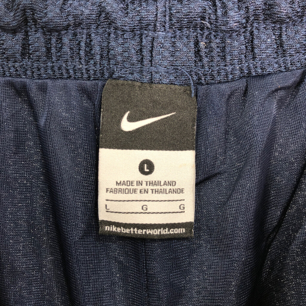 [商品管理番号] R5813 [ブランド] NIKE/ナイキ [サイズ] L [実寸サイズ] ウエスト(ゴム):約74cm 股上:約34cm 股下:約24cm わたり幅:約36cm 裾幅:約35cm [主な素材] 表地 : ポリエステル [色] ネイビー [仕様] スポーツ [状態] キズ:全体 | |||