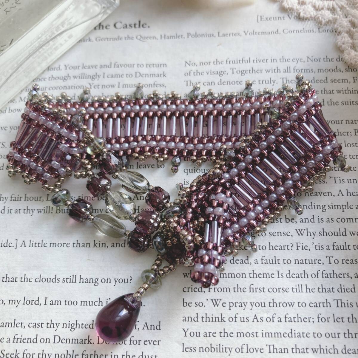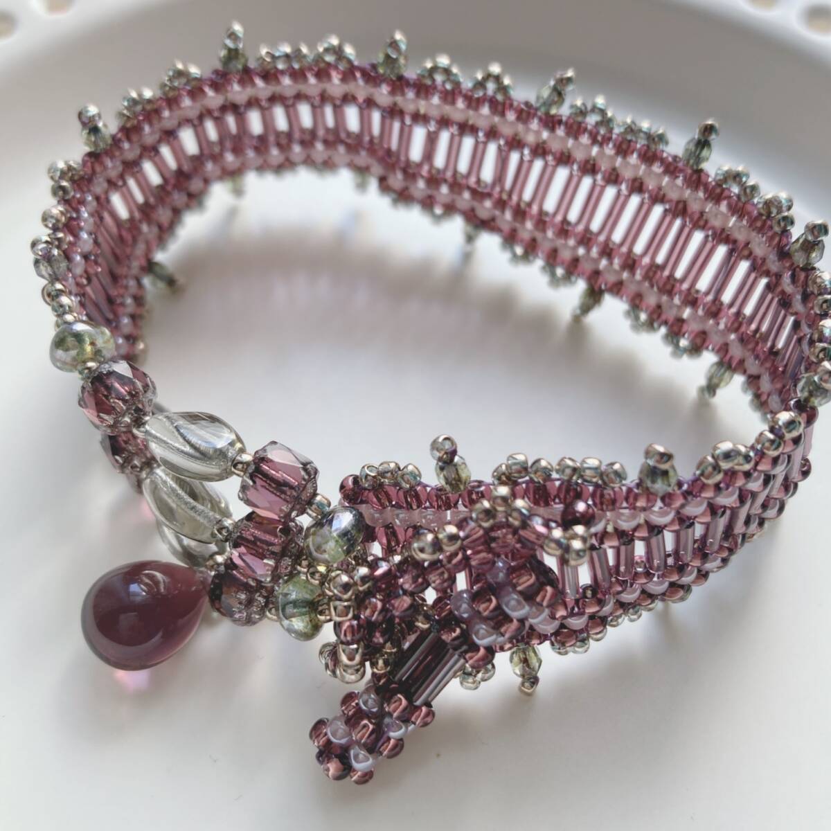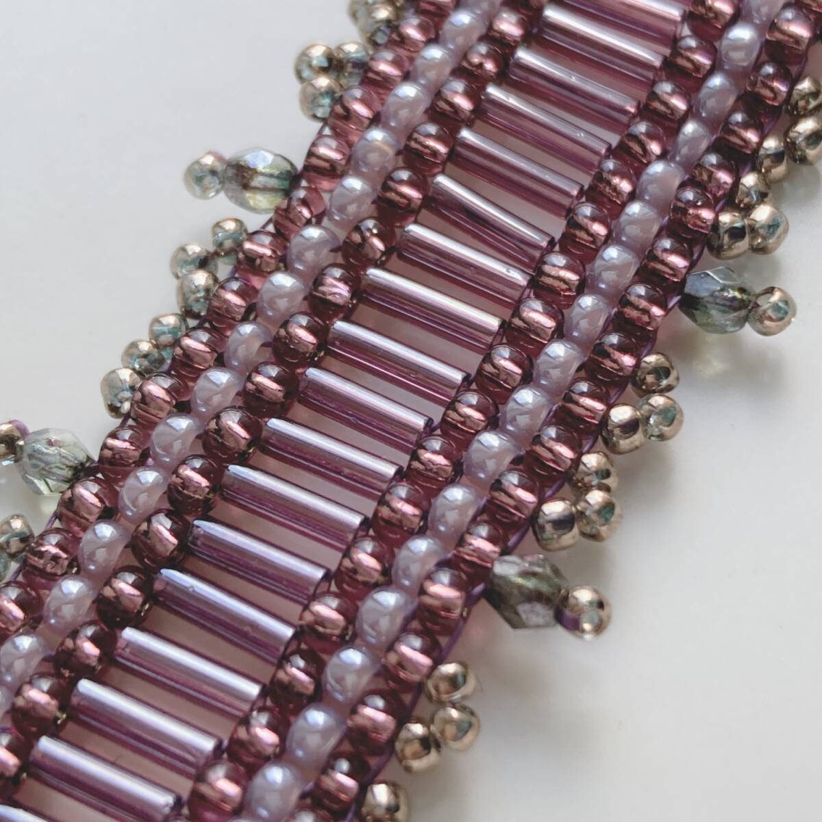 ビーズブレスレット 奇数目ペヨーテステッチのブレス バンブーマジック パープル☆japan Vintage jewelry accessoriesk0771