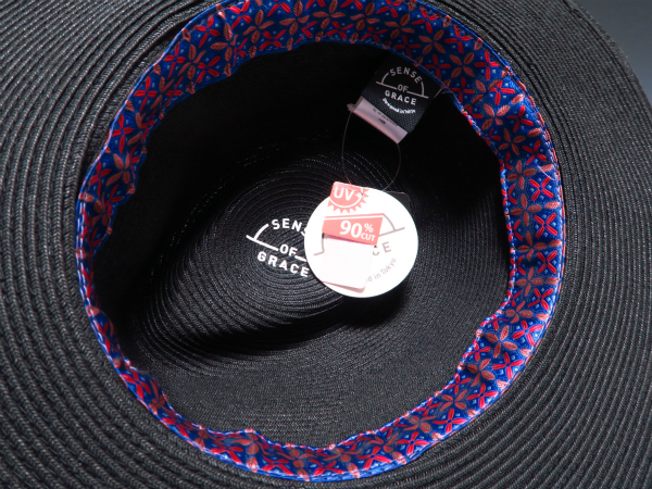 grace★ロングブリムブレードストローハット【黒】新品 定価¥4500 サイズ調節可能 男女兼用 UV90%CUT つば広 センスオブグレース