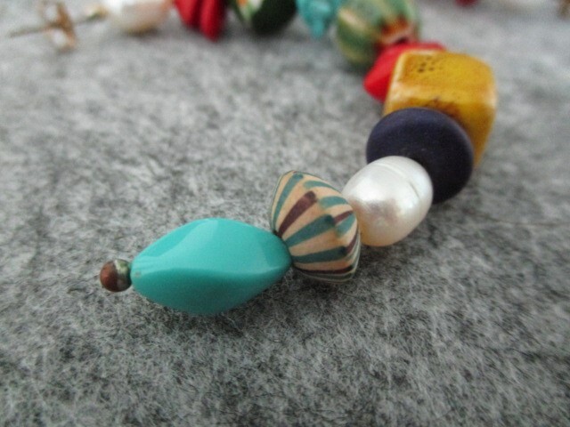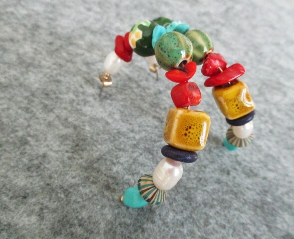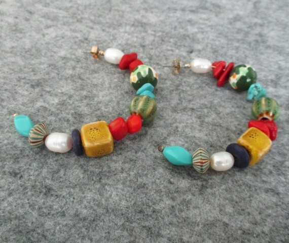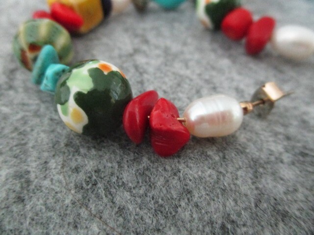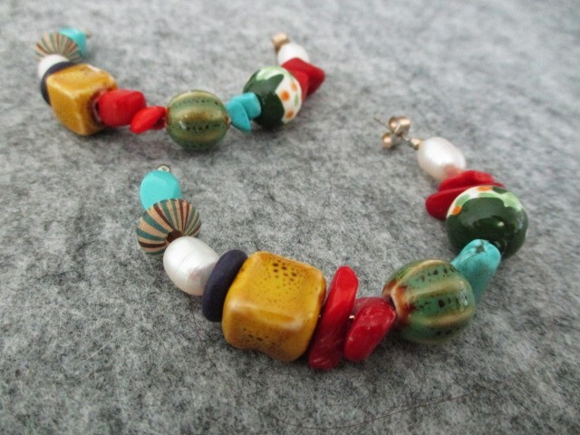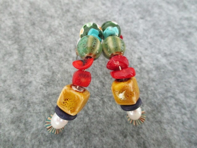 カラフルビーズピアス 陶器パーツ パール 大きめピアス 送料無料