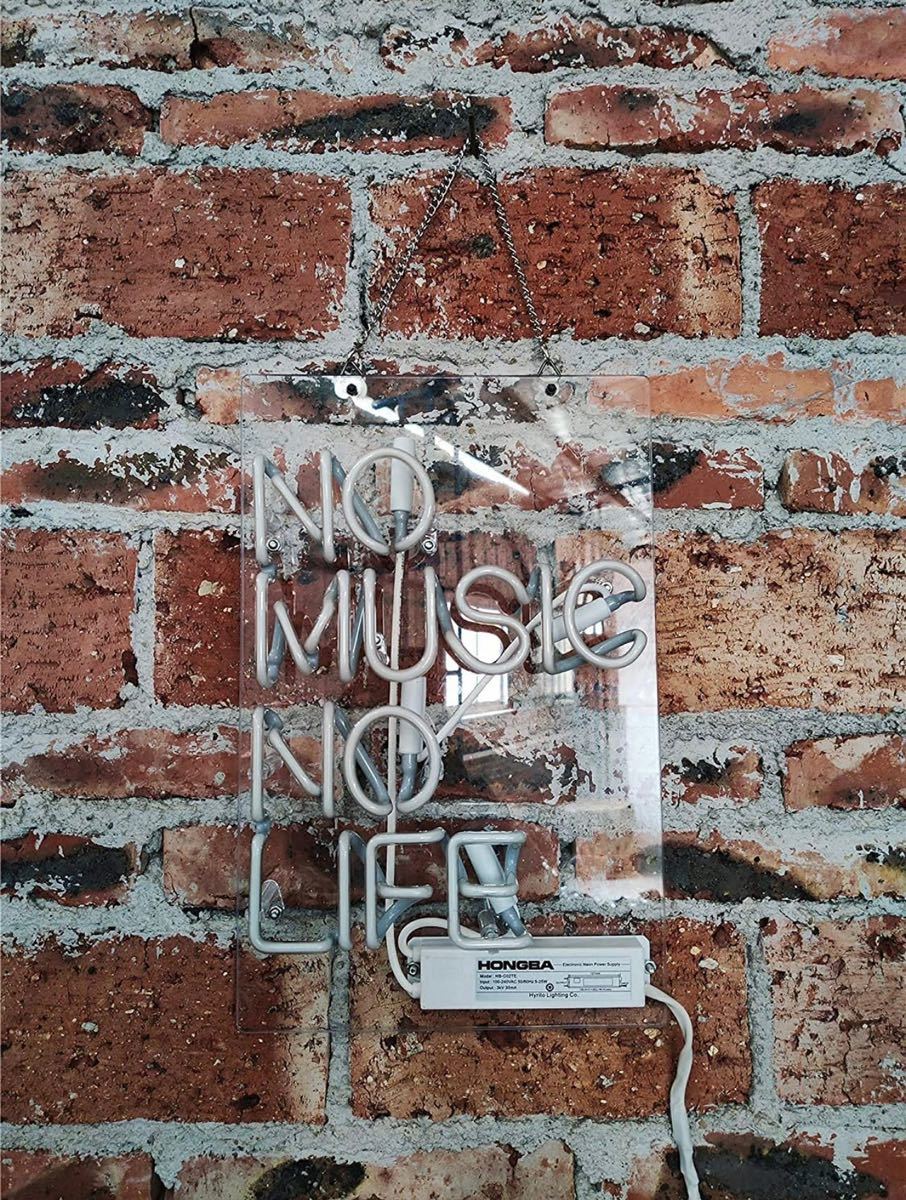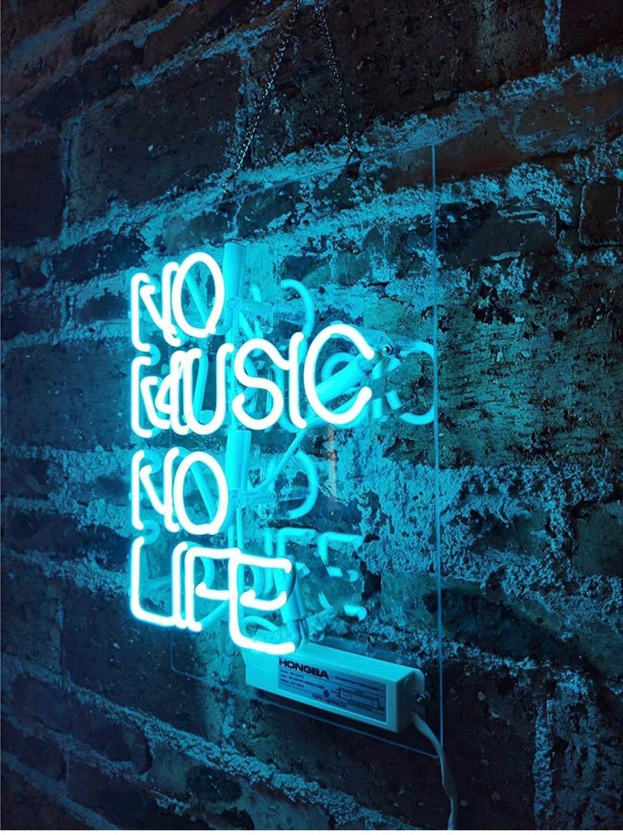 【検索用キーワード】ネオンサイン NO MUSIC NO LIFE ネオン看板 音楽部屋 ガラスネオン 青 ブルーライト スタジオ装飾 インテリアサイン カフェバー 映えアイテム 撮影背景 レトロ看板 プレゼント用