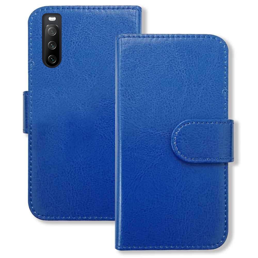 Xperia 10 III SO-52B SOG04 スマホケース(手帳ダークブルー)手帳型 PUレザー 無地 ケース ダイアリータイプ 横開き カード収納 カバー