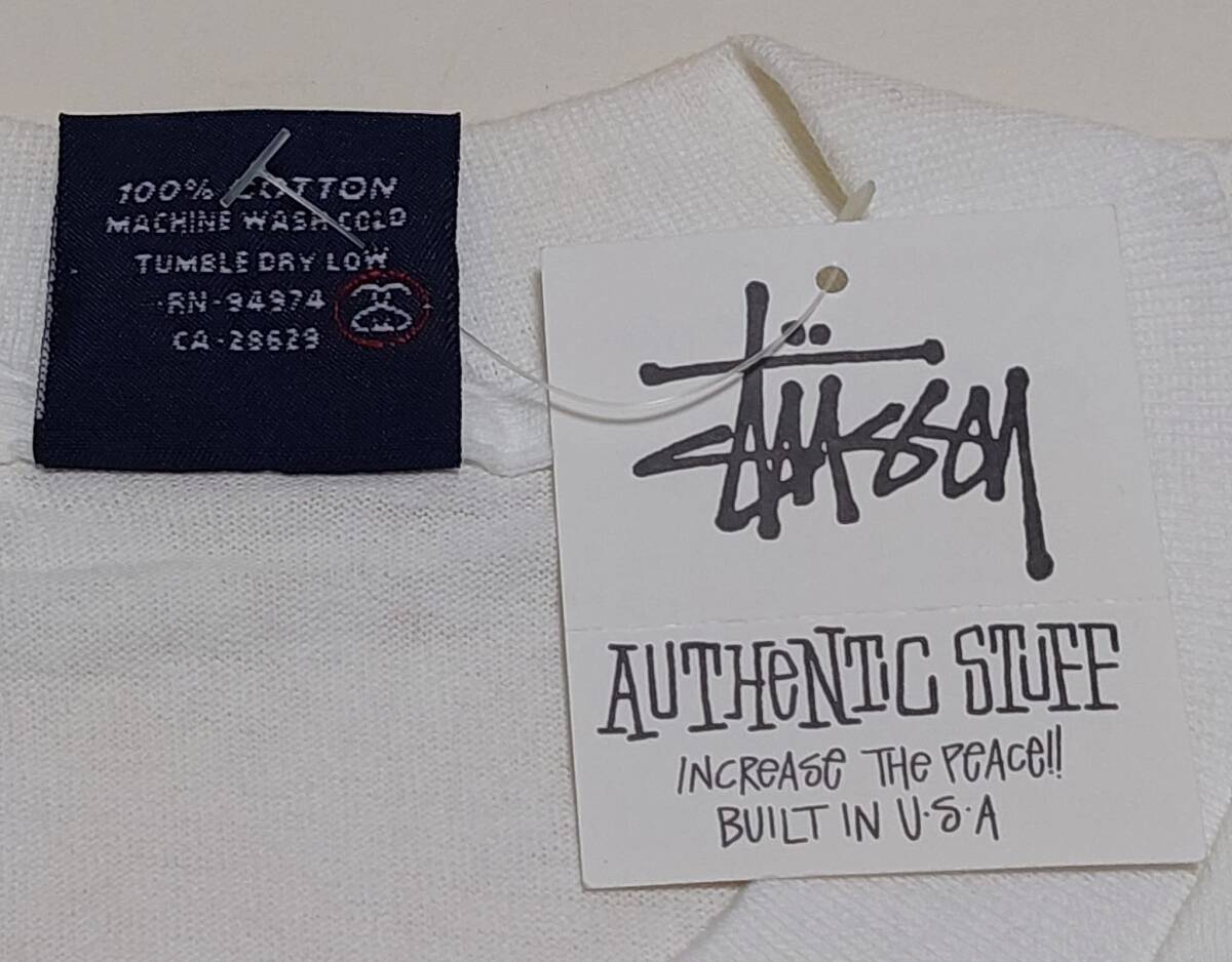 新品タグ付きでシミ汚れは有れどダメージは一切無いこれ程迄に状態良好な同品だと現在では市場にほぼ出回っていない、かなりレアで希少価値の高いデザインのTシャツです! ステューシーは今後も希少なアイテムは価格上昇を続けます!
