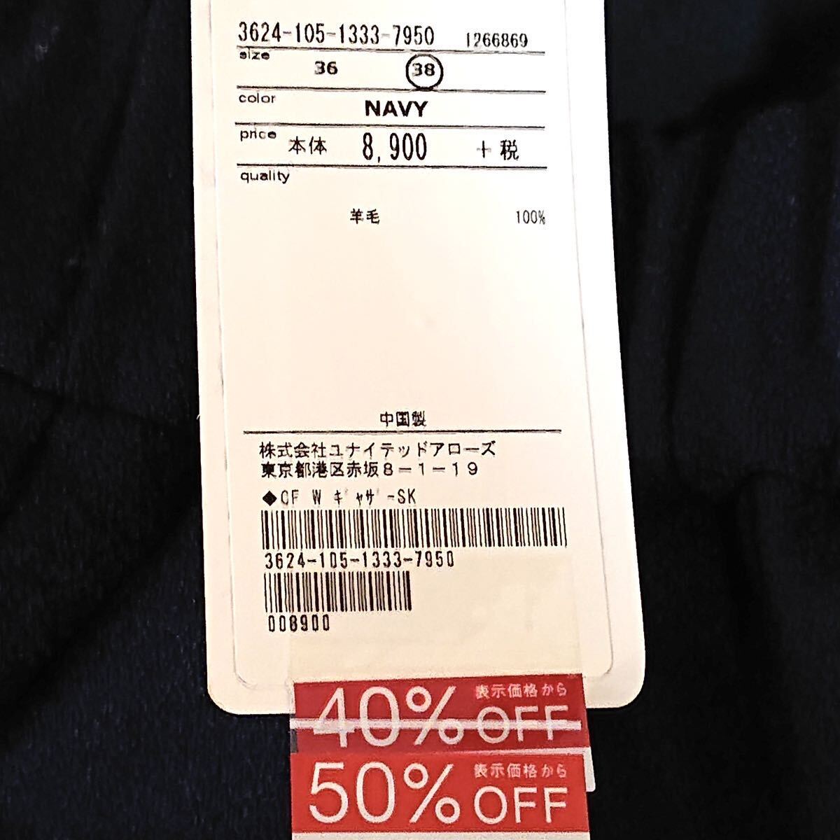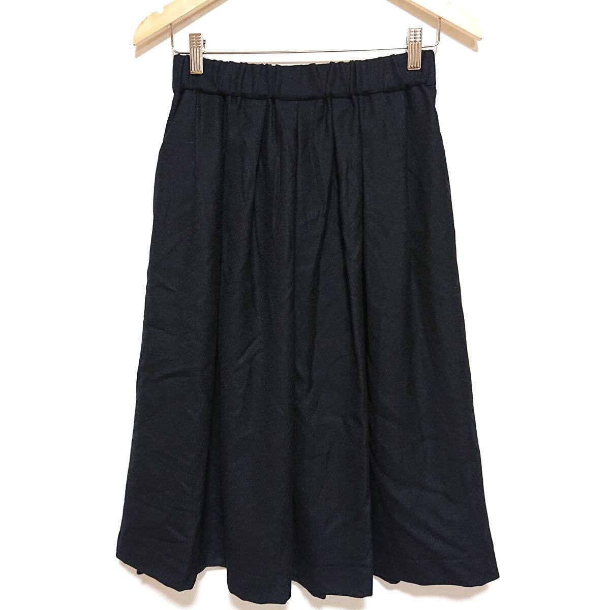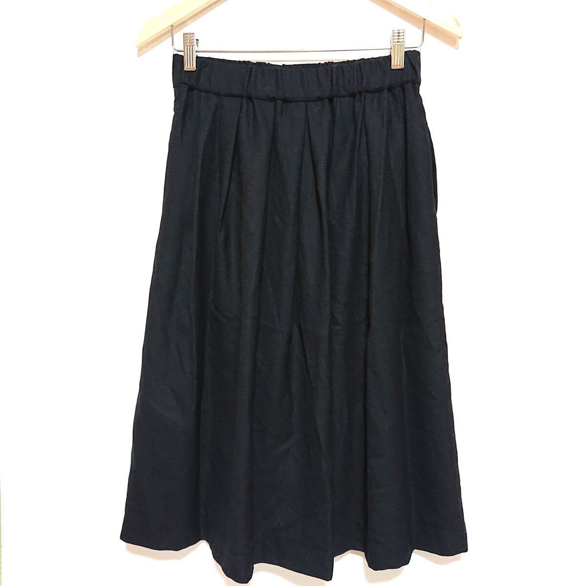 H9674gg 未使用タグ付 UNITED ARROWSユナイテッドアローズ グリーンレーベルリラクシング サイズ38(M位) スカート 黒 羊毛 ウェストゴム