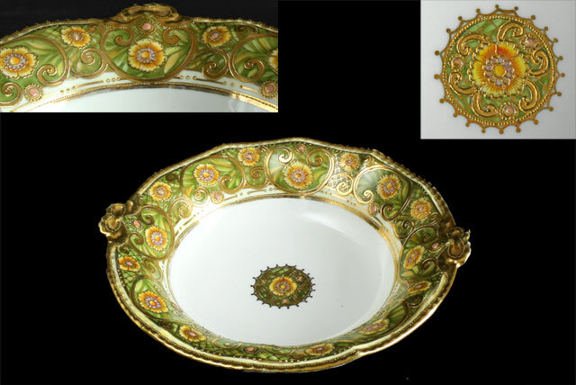 里帰り オールドノリタケ  金盛りビーディング エナメル花柄 ボウル ボール 鉢 1910-1911年製造