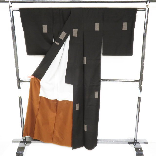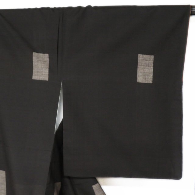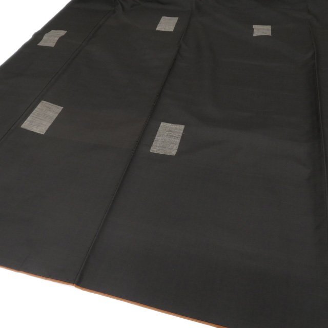 丈159cm(+3) 裄65.5cm(+3) 袖丈49cm(+4) 前幅24.5cm 後幅29.5cm ※サイズのお直し、承ります。 (身丈のみ、身幅のみのお直しは承っておりません) ※身丈は肩から測っております。 ※()内はおおよそのお直しいただける長さです。胴裏の長さ等によって()内の長さ通りお直しできない場合があります。 単位:cm 素材 正絹 商品ランク B ●着用時期 10月~5月(+-2週間) ●着用シーン お出かけ、観劇、お買い物など ●お色 黒色 本場大島紬は奄美大島の特産品で、手で紡いだ絹糸を泥染めしたものです。 泥染めとは、工程に10ヵ月以上かかるものもあるという、専用の田んぼの泥に糸を浸けて染める技法です。 手間の分だけ艶のある黒色とふっくらとしたやわらかさが生まれ、さらに「皺になりにくい」「燃えにくい」「汚れにくい」「虫がつきにくい」等様々な長所があります。 ハリがある生地、シュッシュッと耳心地良い衣擦れの音… 軽やかでさらりとした手触りの、たいへん軽く肌心地の良いこの織りあがりを、是非お手元でもご堪能いただきたく思います。 使用感の少ない、美しいお品物です。 写真に写っている着物のみの販売で帯等の付属品はついておりません。 一部商品は実店舗・他サイトでも並行して販売しておりますので売り切れの際はご了承ください。 その他多数販売中 n | ||||||