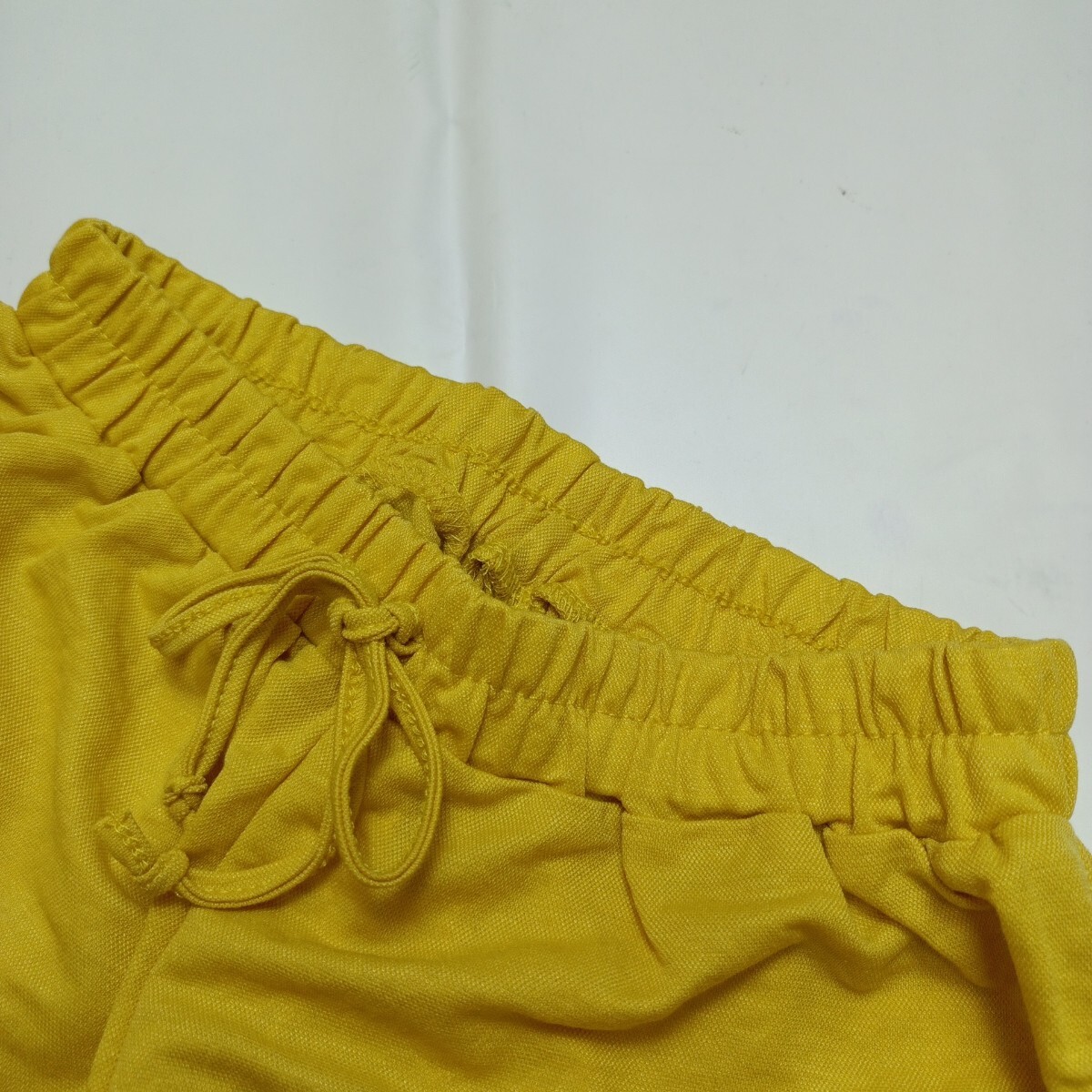 【未使用】140【黄】 子供服 キッズ 女の子 ショートパンツ ズボン 柔らかい ウエスト 総ゴム 部屋着 ルームウェア 普段着