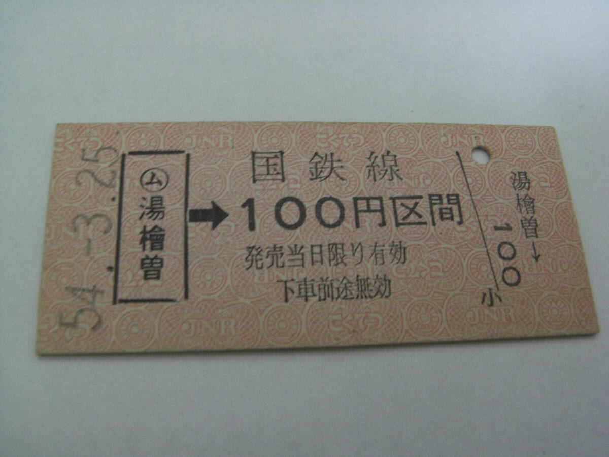上越線 ム湯檜曽→国鉄線100円区間 昭和54年3月25日 ム湯檜曽発行