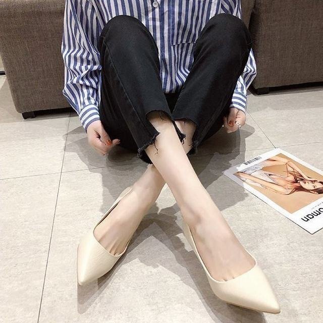 パンプス レディース ビジネスシューズ 革靴 PU革 フォーマル ロングノーズ ハイヒール OL 身長アップ 米色24cm