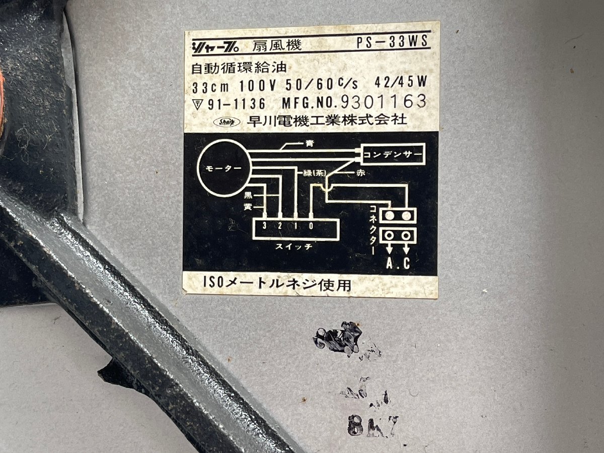 SHARP PS-33WS 扇風機 3枚羽根 33cm 昭和 レトロ アンティーク シャープ 【現状品】 こちらの商品はあくまで中古品です。商品ランクや下記の商品状態をご理解の上、入札をお願い致します。 | ||||||||||