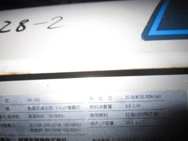 【仕様】熱風式 直火型 ジェット噴霧式 35Kw 30100kcal/h 灯油 100V 50/60Hz