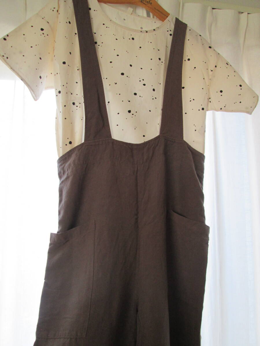 スローブイエナSLOBE IENA  リネンワイドオールインワン ブラウン うしろの紐がかわいい♪