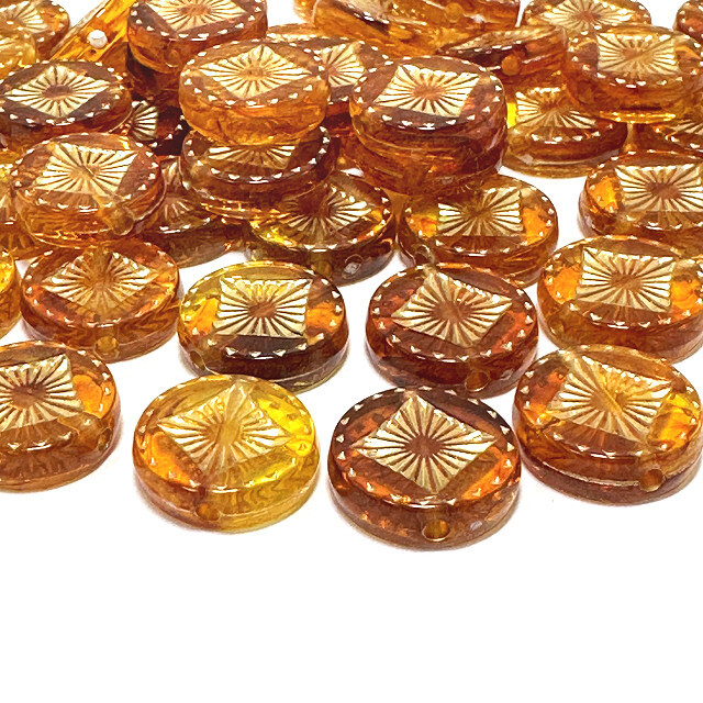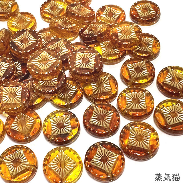 b9826 アンティーク調 太陽柄ビーズ アンバーブラウン30個【宇宙ピアス イヤリング ハンドメイド用アクセサリーパーツ素材】蒸気猫パーツ
