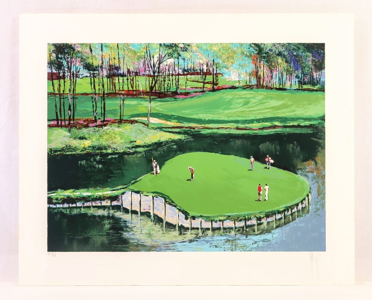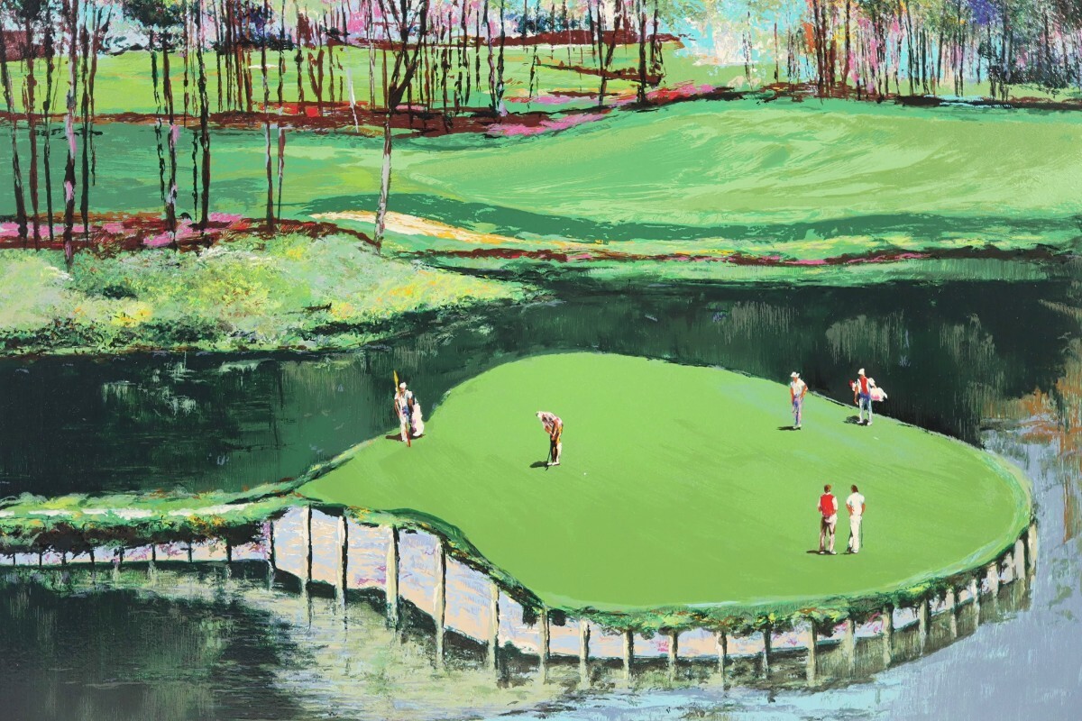 真作 マーク・キング シルクスクリーン「TPCソーグラス 17番ホール」画寸51×38cm 英国人作家 米フロリダ州 最難関アイランドグリーン 9165