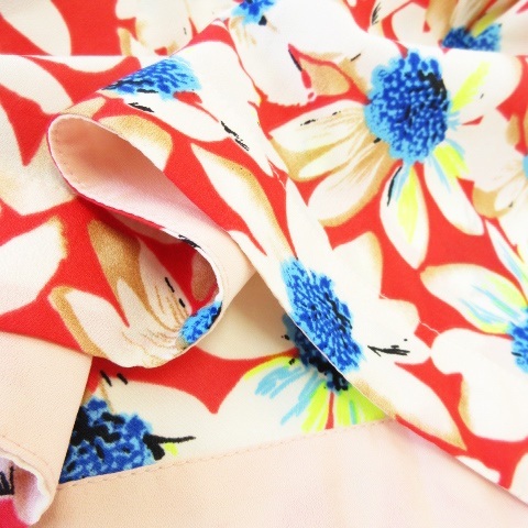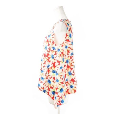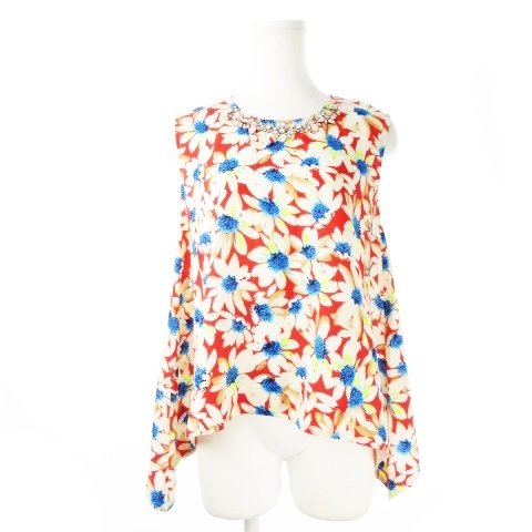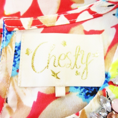 チェスティ Chesty ブラウス クルーネック ノースリーブ ヘムライン テントライン ビジュー 花柄 1 赤 レッド /CK7 ☆ レディース