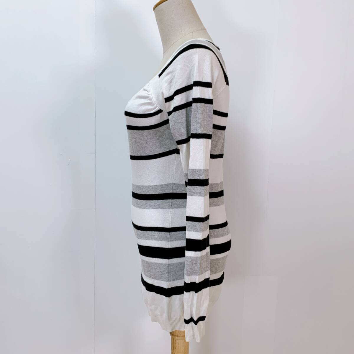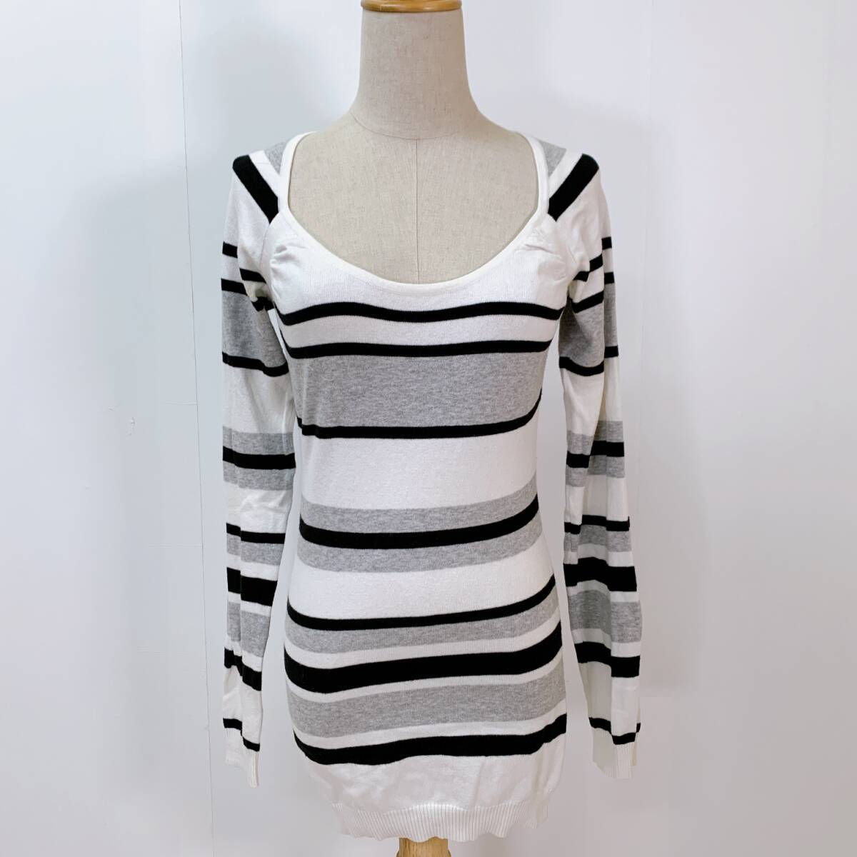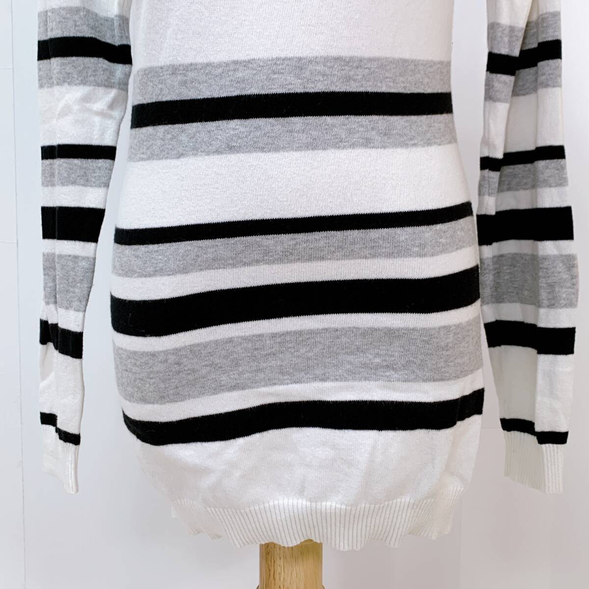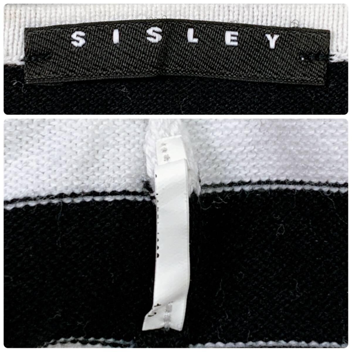 YH0574 SISLEY シスレー レディース ボーダー柄 長袖 カットソー ホワイト ブラック グレー 薄手 カジュアル シンプルコーデ 万能 USED